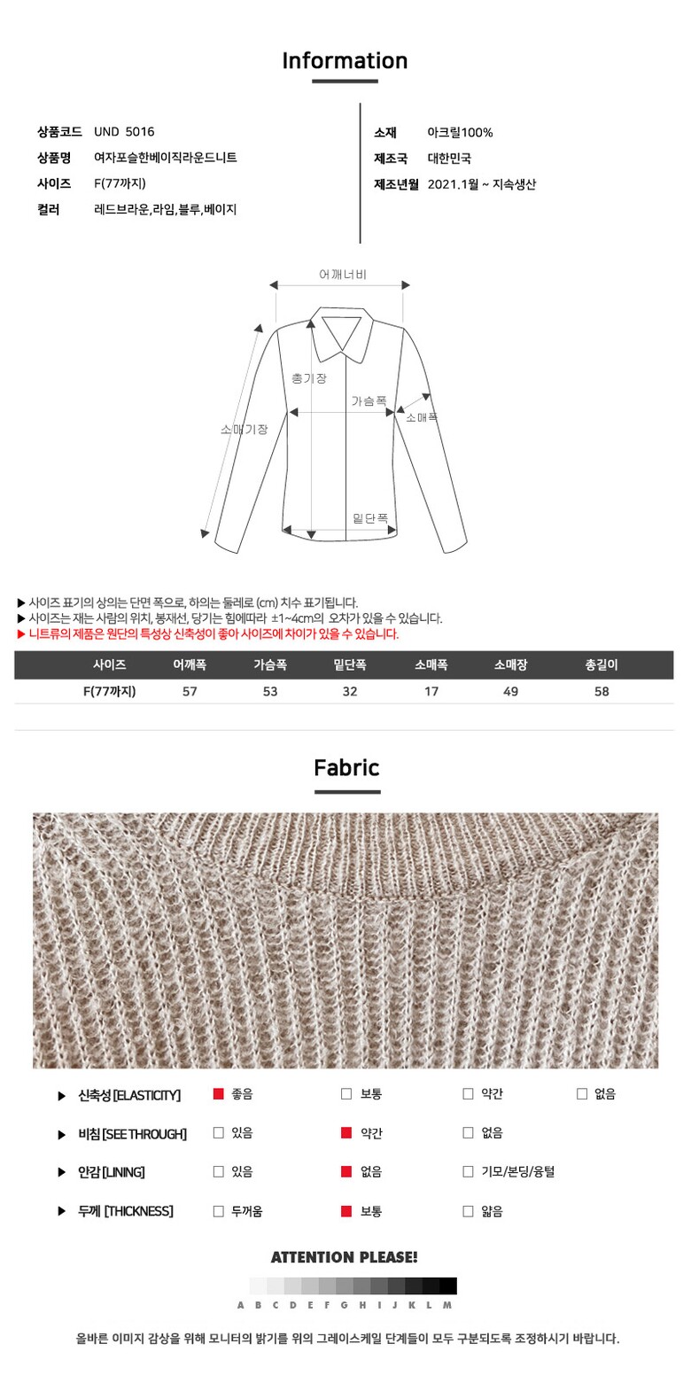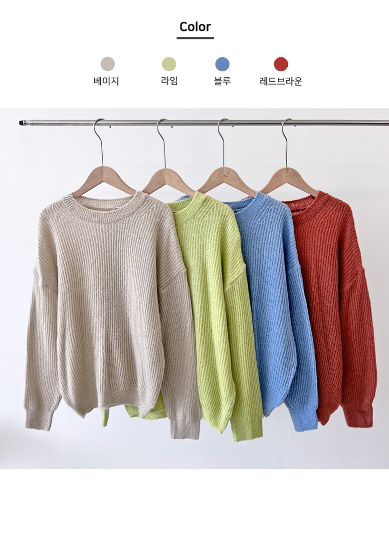 [1+1] 여자 포슬한 베이직 라운드 니트 여성 스웨터