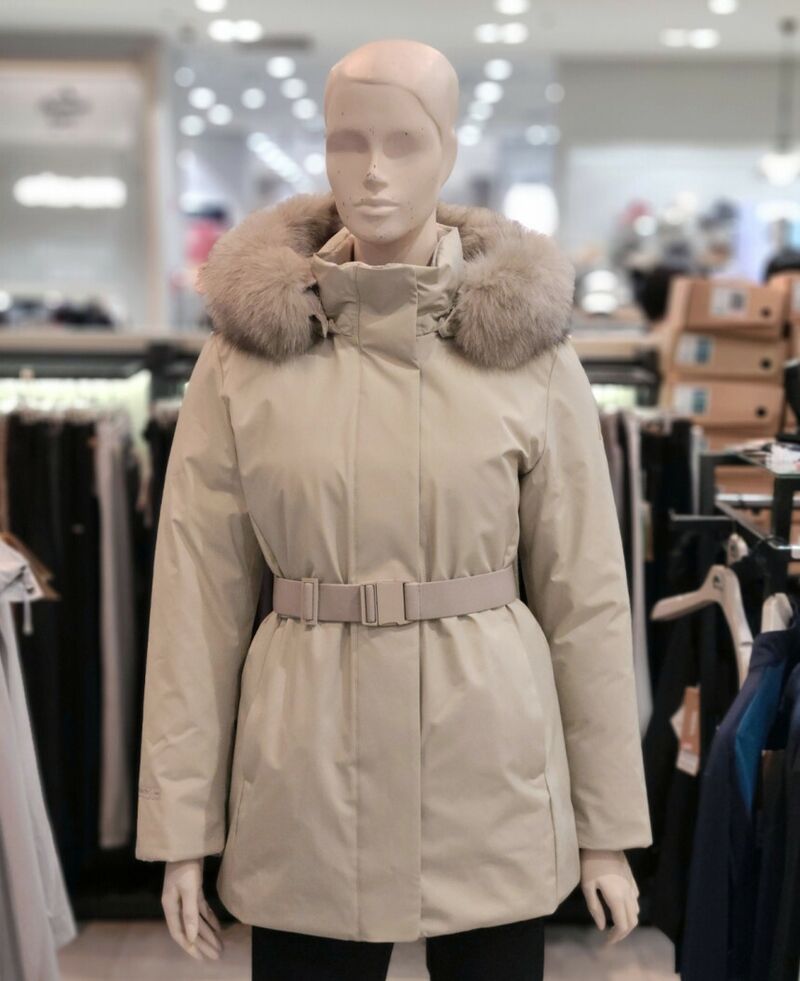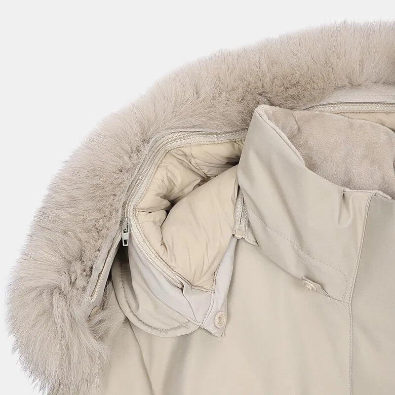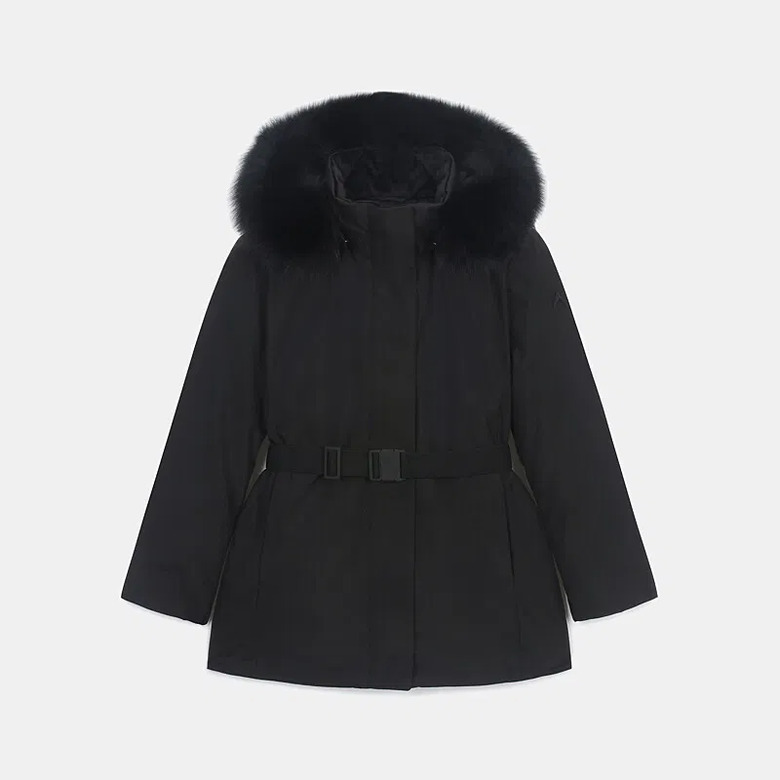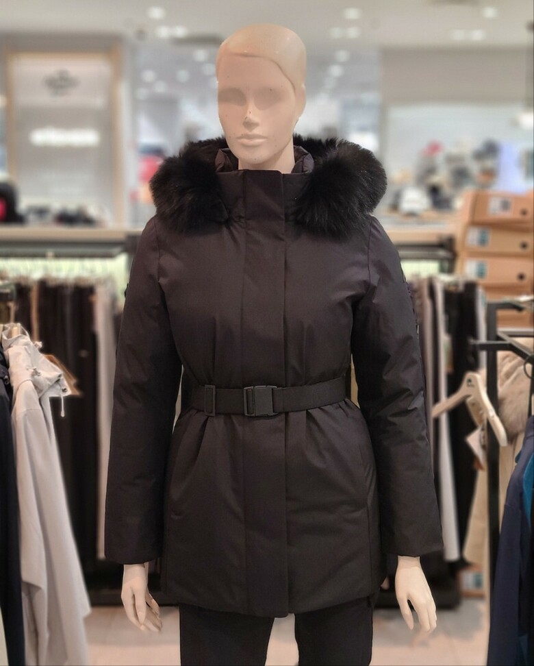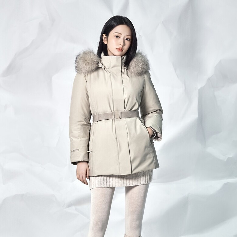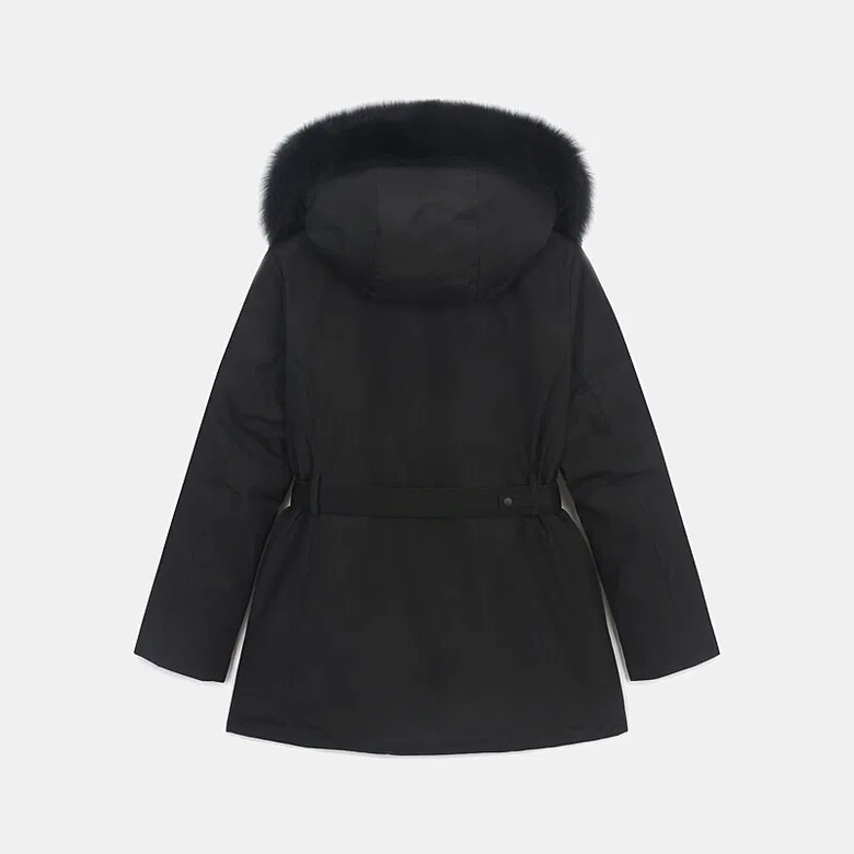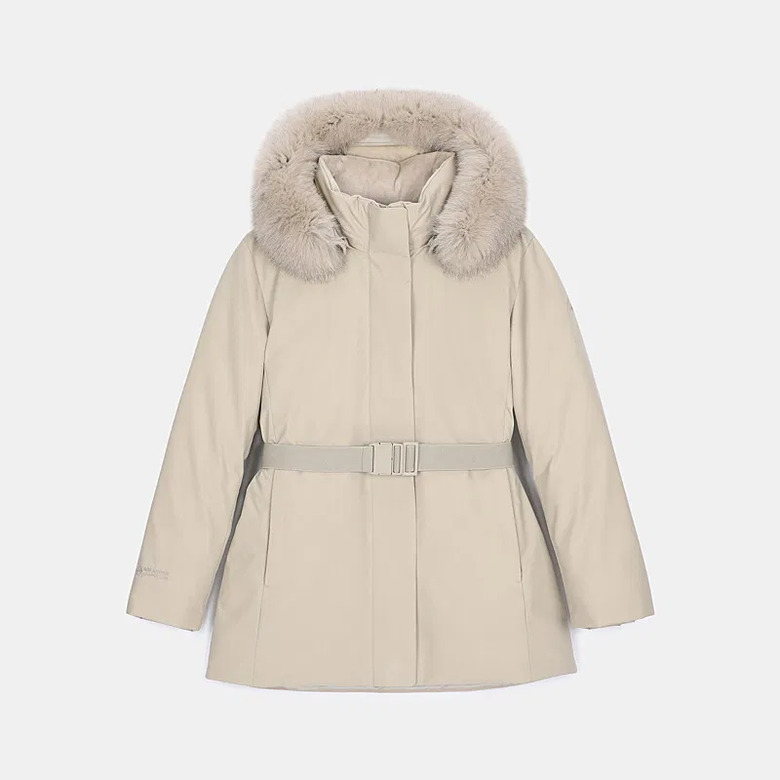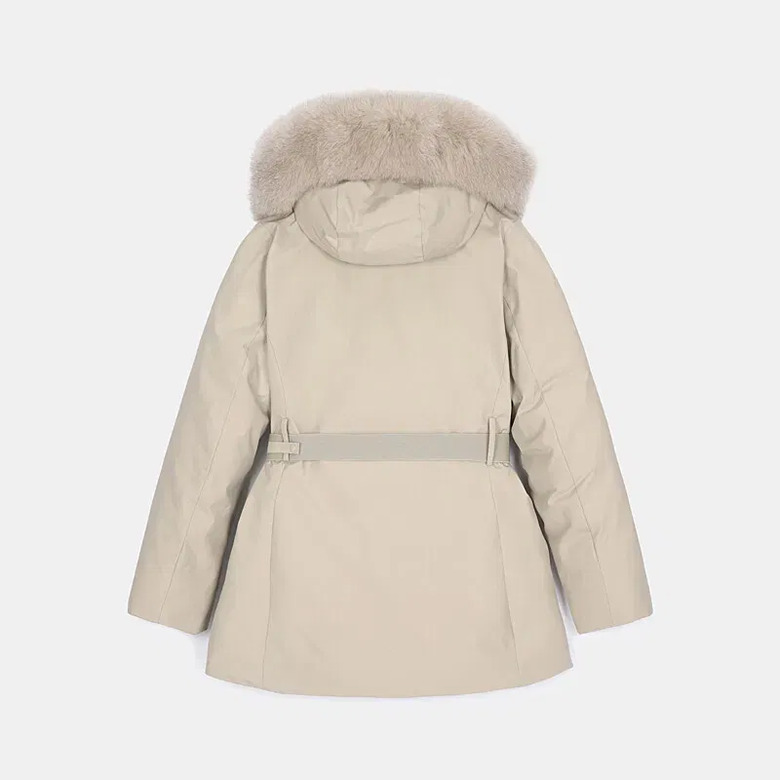 겉감 폴리에스터 100% / 배색1 폴리에스터 100% / 배색2 천연모피(여우) 100% / 벨트 고무사(지정외) 20% / 벨트 폴리에스터 80% / 소맷단 폴리우레탄 3% / 소맷단 폴리에스터 97% / 안감1 나일론 100% / 안감2 나일론 100% / 주머니안감 폴리에스터 100% / 충전재 거위깃털 20% / 충전재 거위솜털 80%
