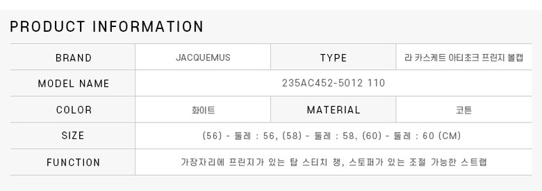 자크뮈스 모자 235AC452-5012 110 라 카세트 아티쇼 프린지 모자 당일발송