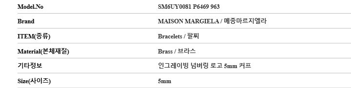 마르지엘라 팔찌 SM6UY0081 P6469 963 MM6 인그레이빙 넘버링 로고 5mm 여성팔찌 당일발송
