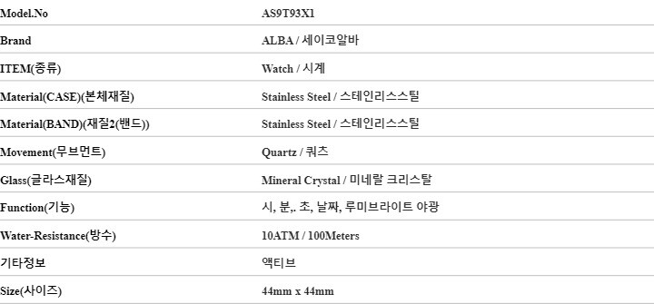 세이코알바 AS9T93X1 액티브 남성 메탈시계