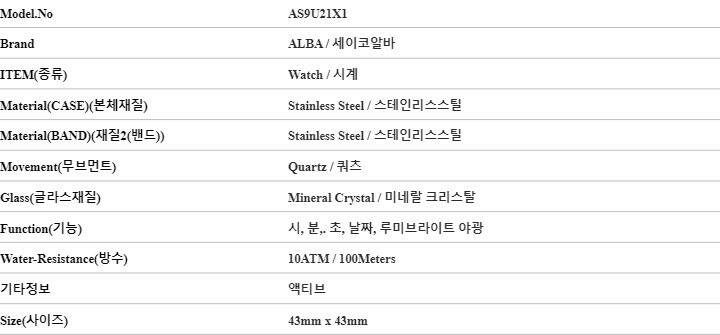 세이코알바 AS9U21X1 액티브 남성 메탈시계
