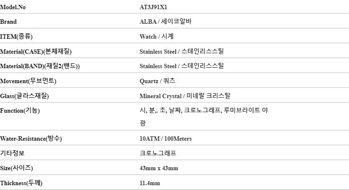 | 3. 제조사 | 세이코알바/MACHO-병행수입 |