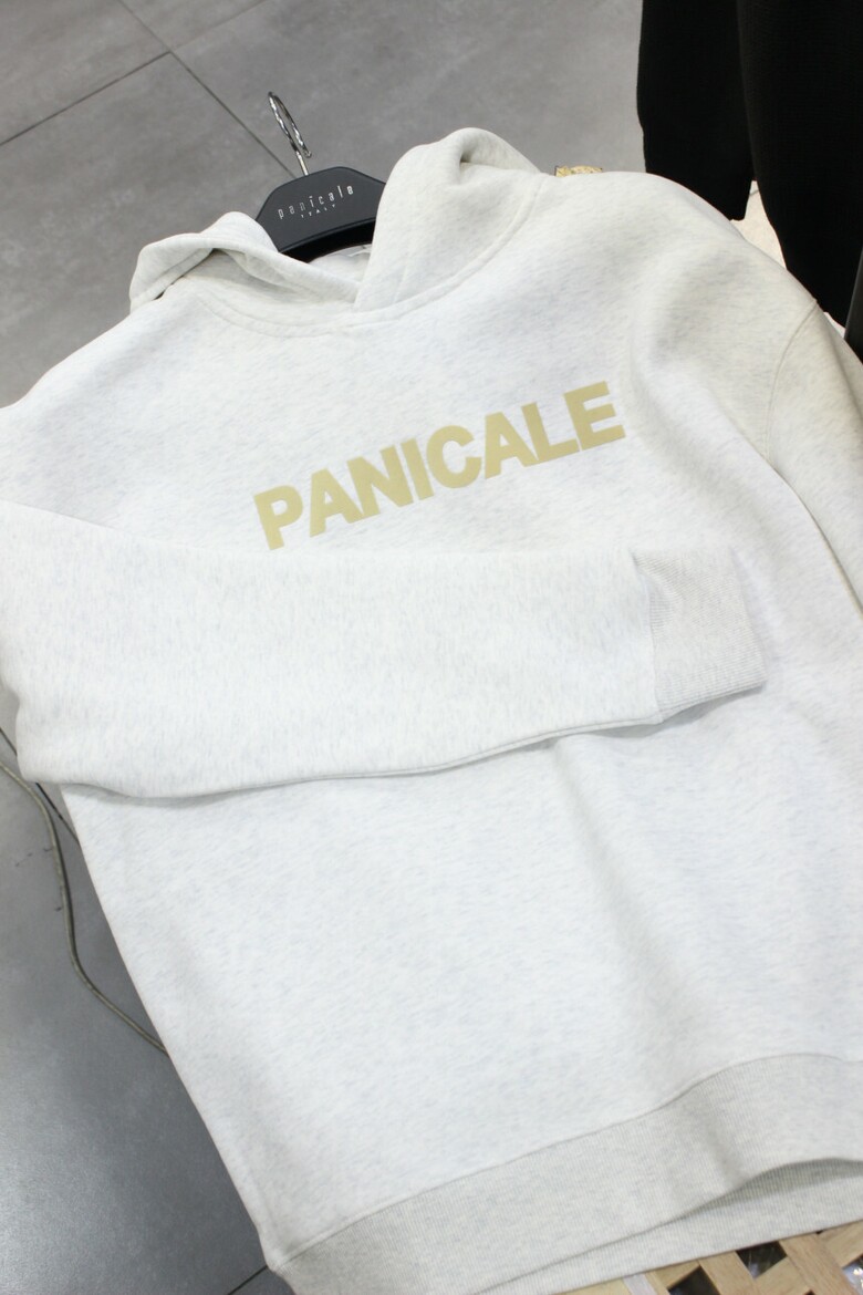 빠니깔레 로고와 함께 후드에 스트링없이 스트링홀만 남겨두어 포인트를 주었습니다