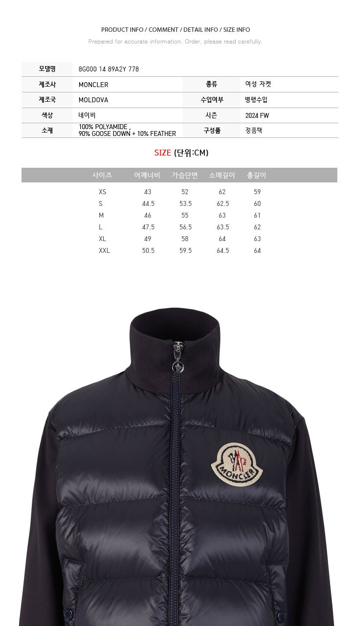 몽클레어 24FW 빅 로고 패치 믹스 니트 패딩자켓 네이비 8G000 14 89A2Y 778