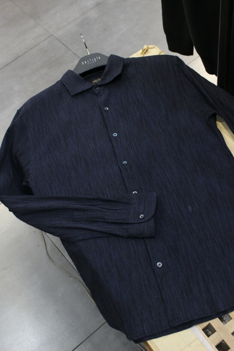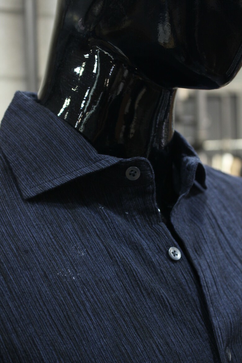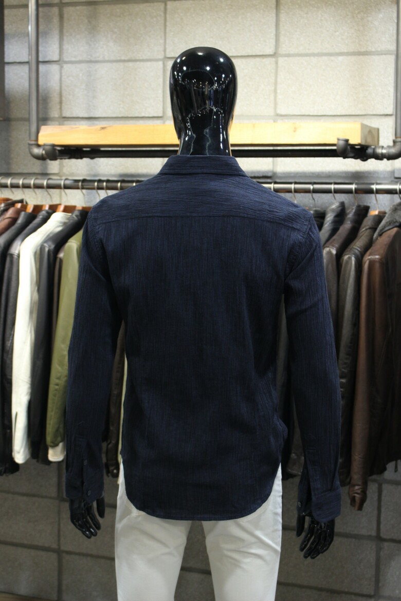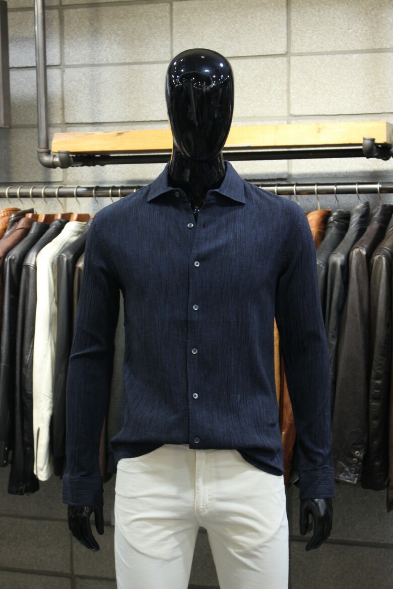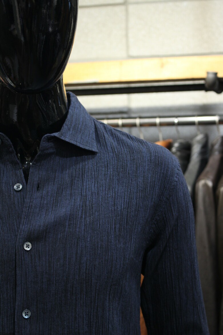 네이비코튼린넨 슬림핏 플리츠셔츠 d-gcsh54na