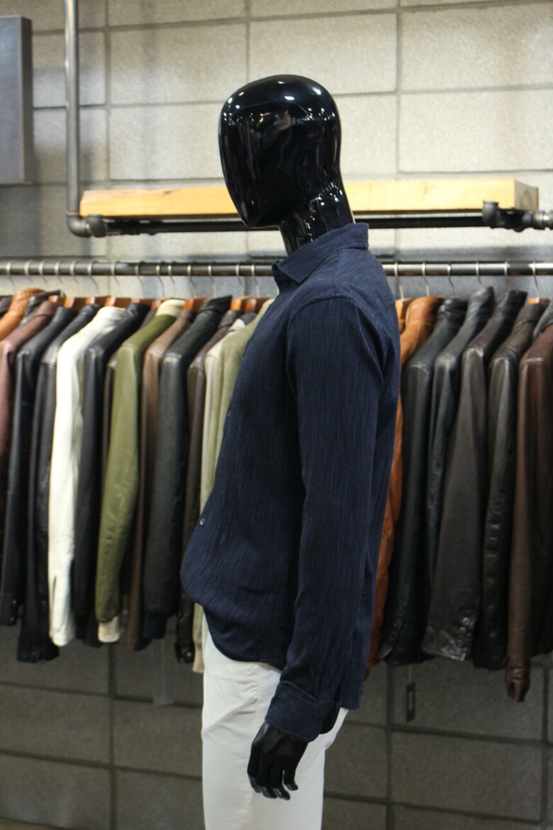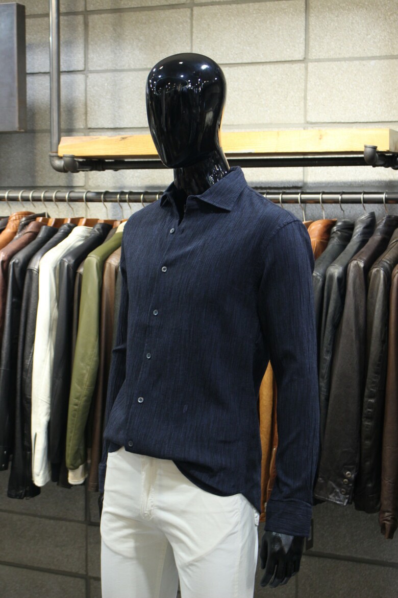 유니크한 원단질감의 플리츠셔츠입니다