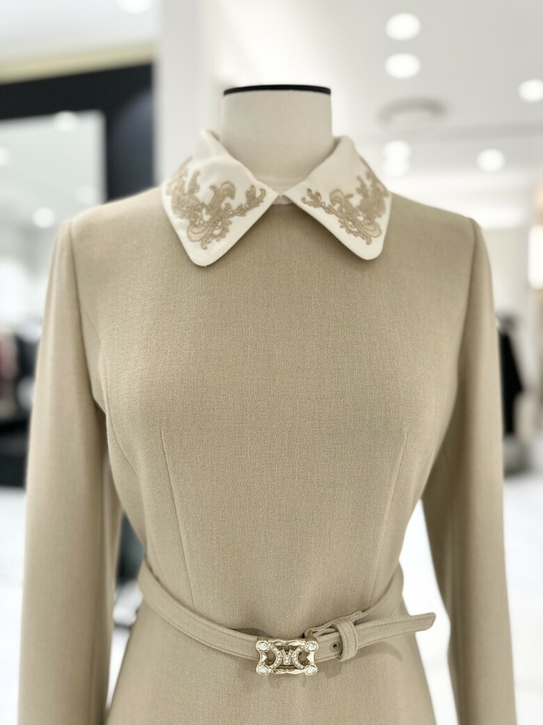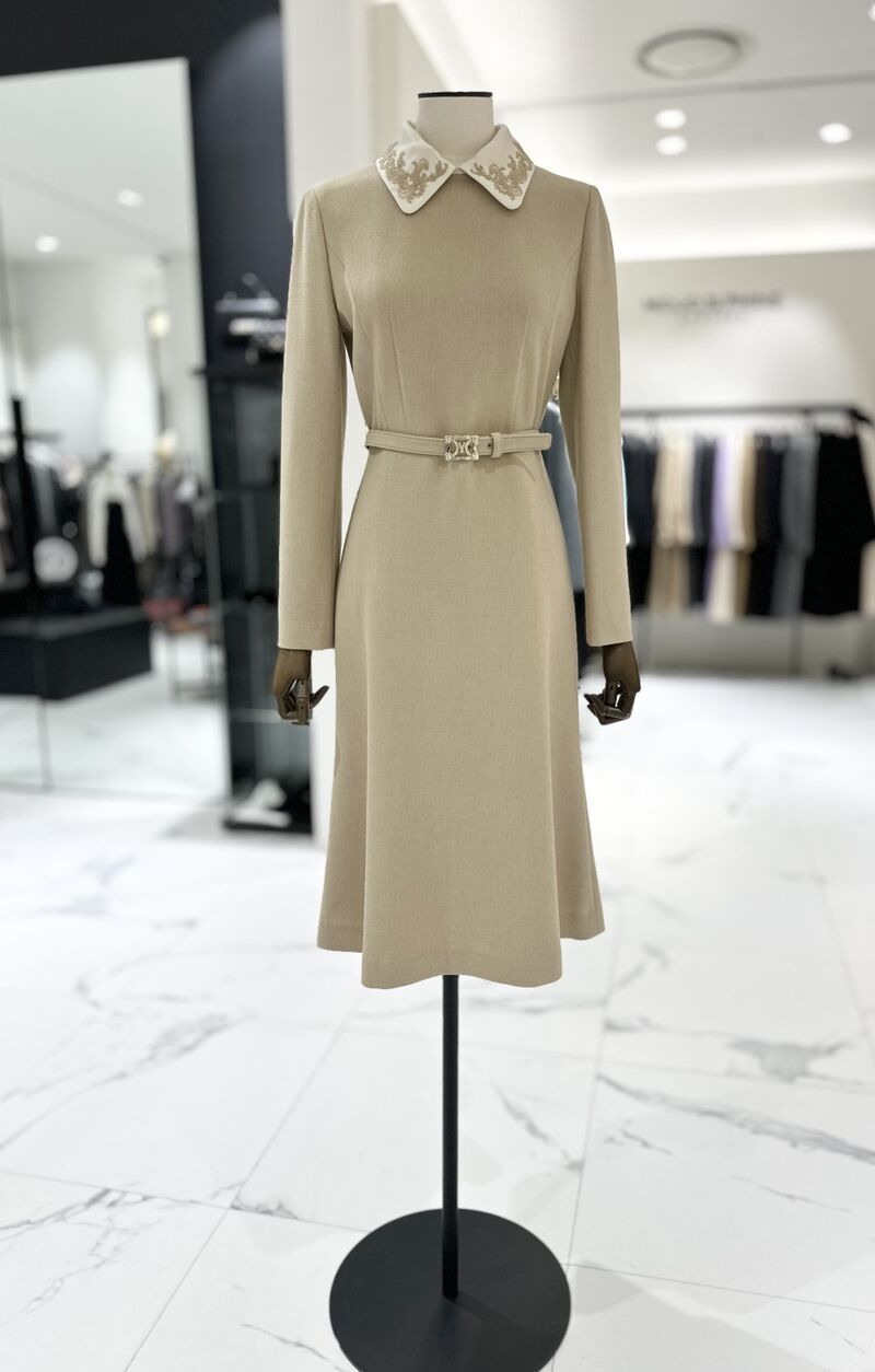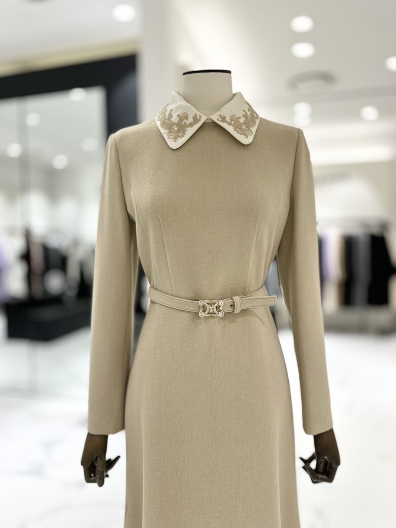 모조에스핀 자수 카라 탈부착 벨티드 원피스 J234MSE025