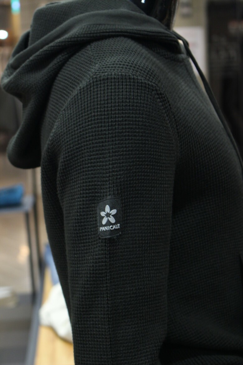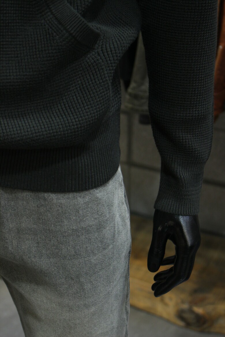 카키컬러의 와플조직면니트로 신축성이 좋아 슬림하면서도 비교적 편안한 느낌입니다