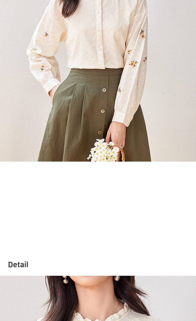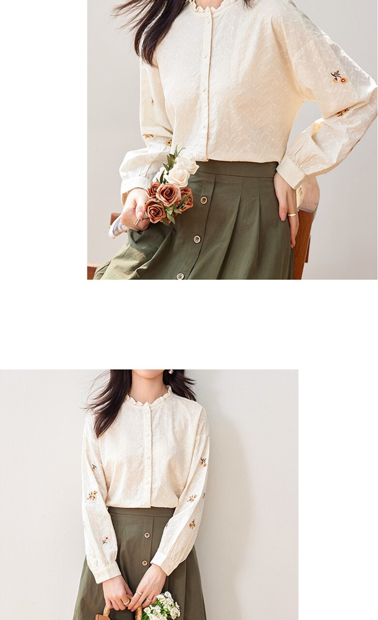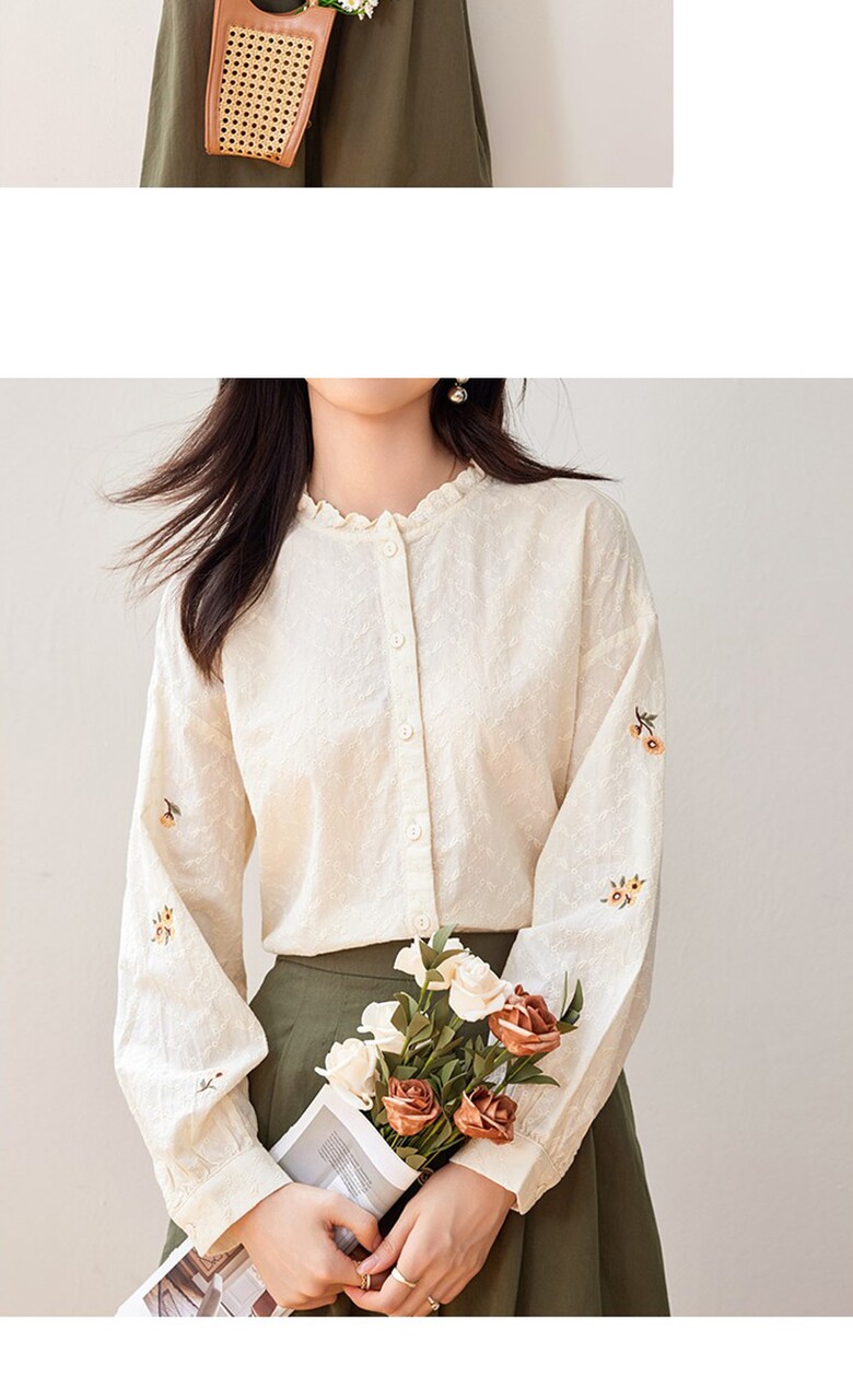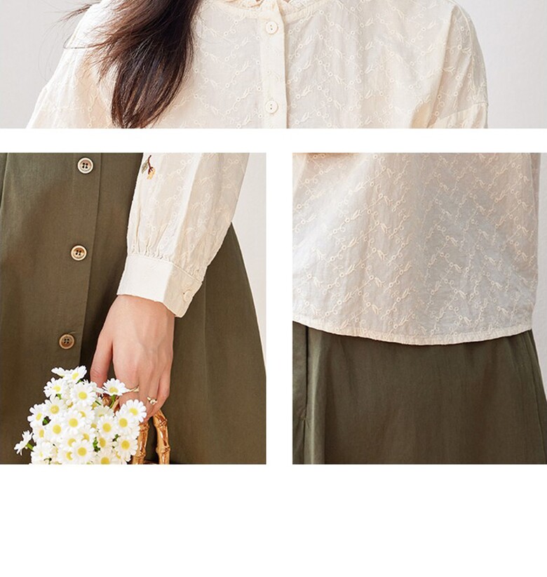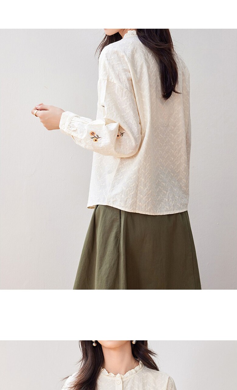 [~77까지]네이저 소매 플라워 포인트 블라우스