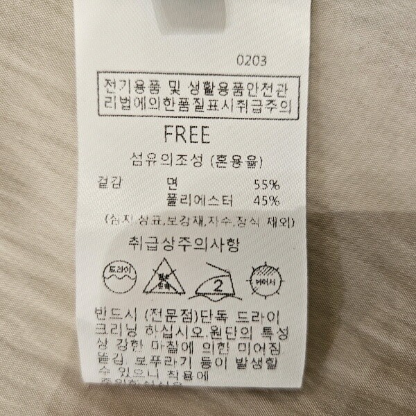 제품소재 : 겉감 - 면55%, 폴리에스터45%