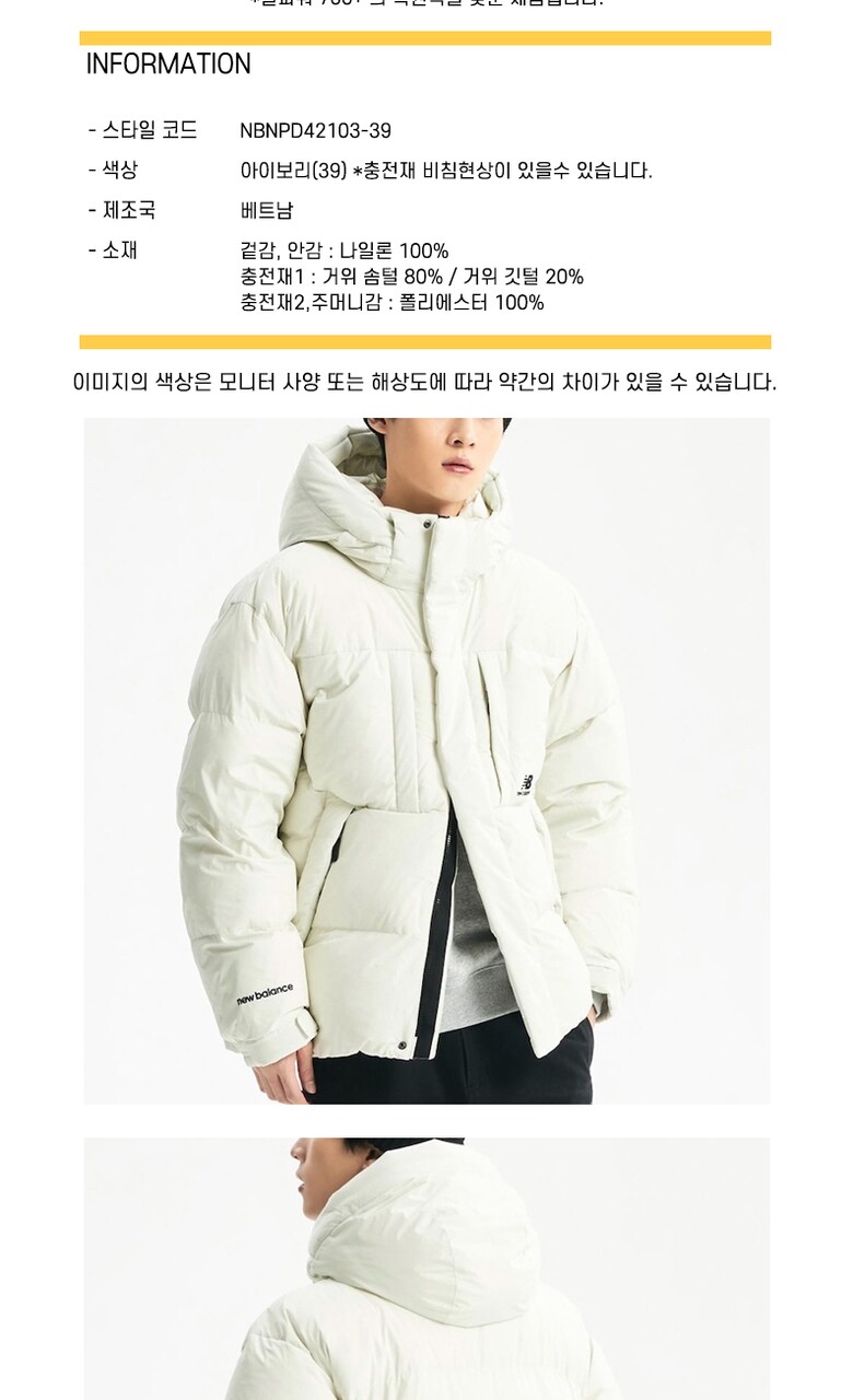 뉴발란스 공용 플라잉 구스다운 숏패딩 점퍼 NBNPD42103-39