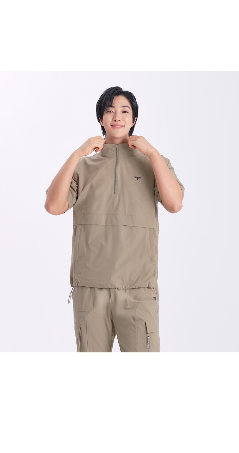 다운블로우 남자 여름 반집업 아노락 스트링 캐주얼 반팔 티셔츠