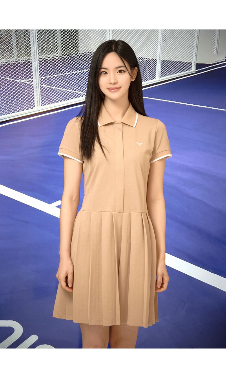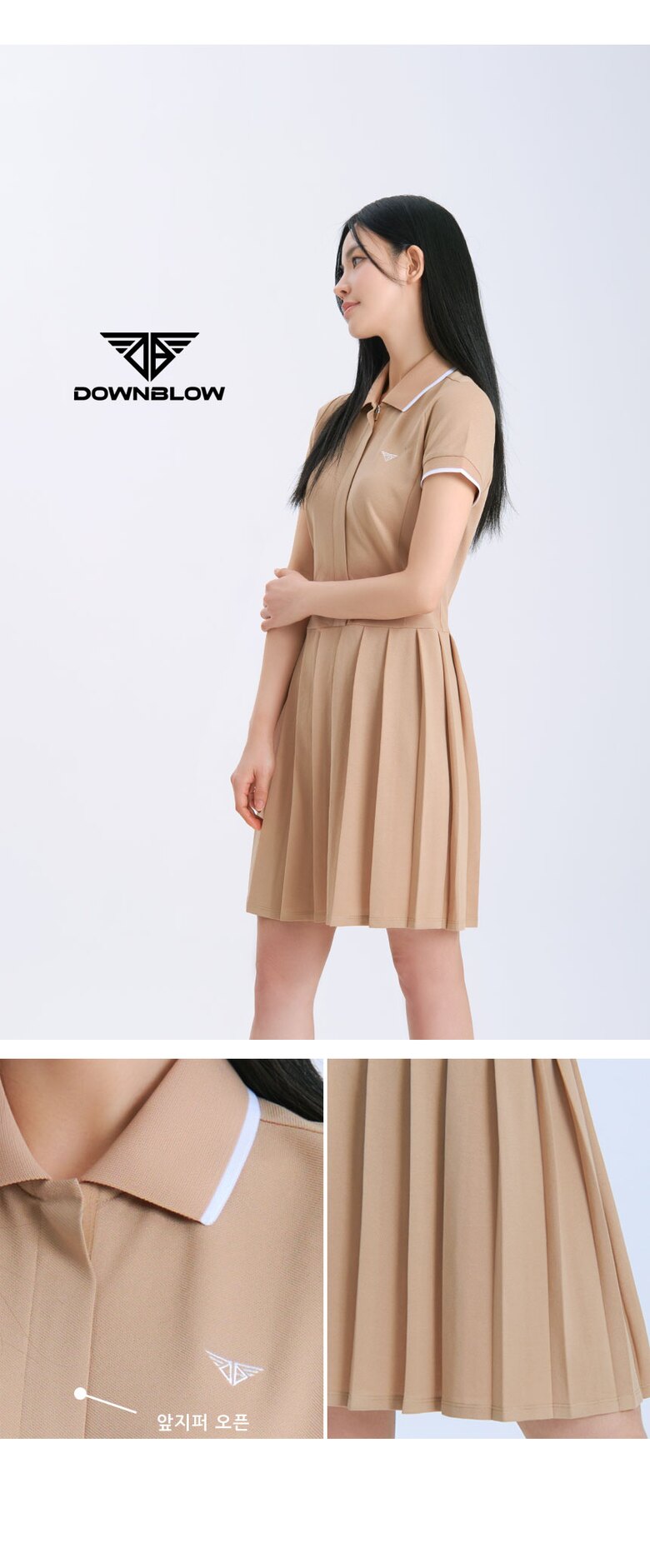 다운블로우 여성 여름 골프웨어 골프 플리츠 반팔 원피스 베이지