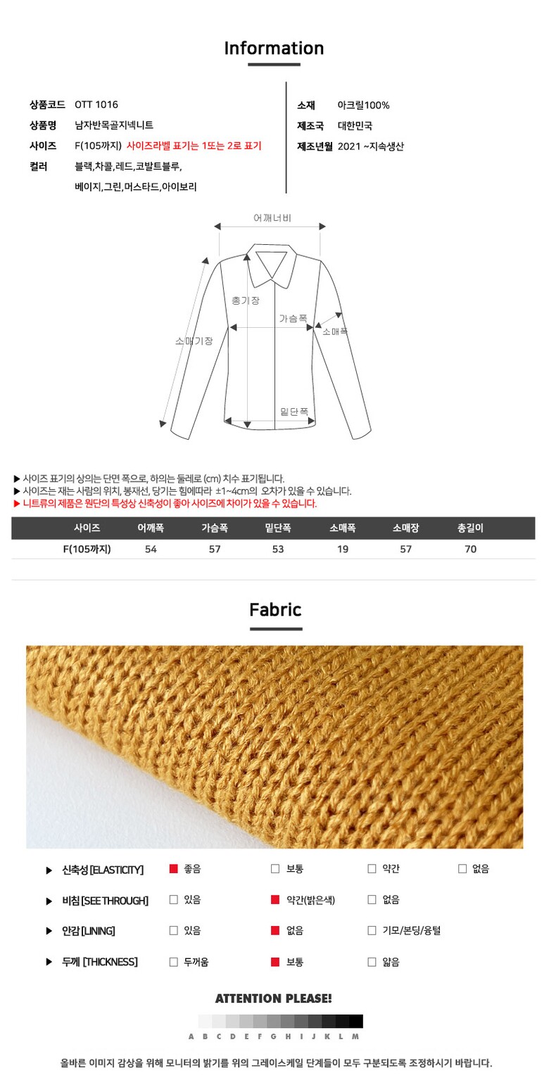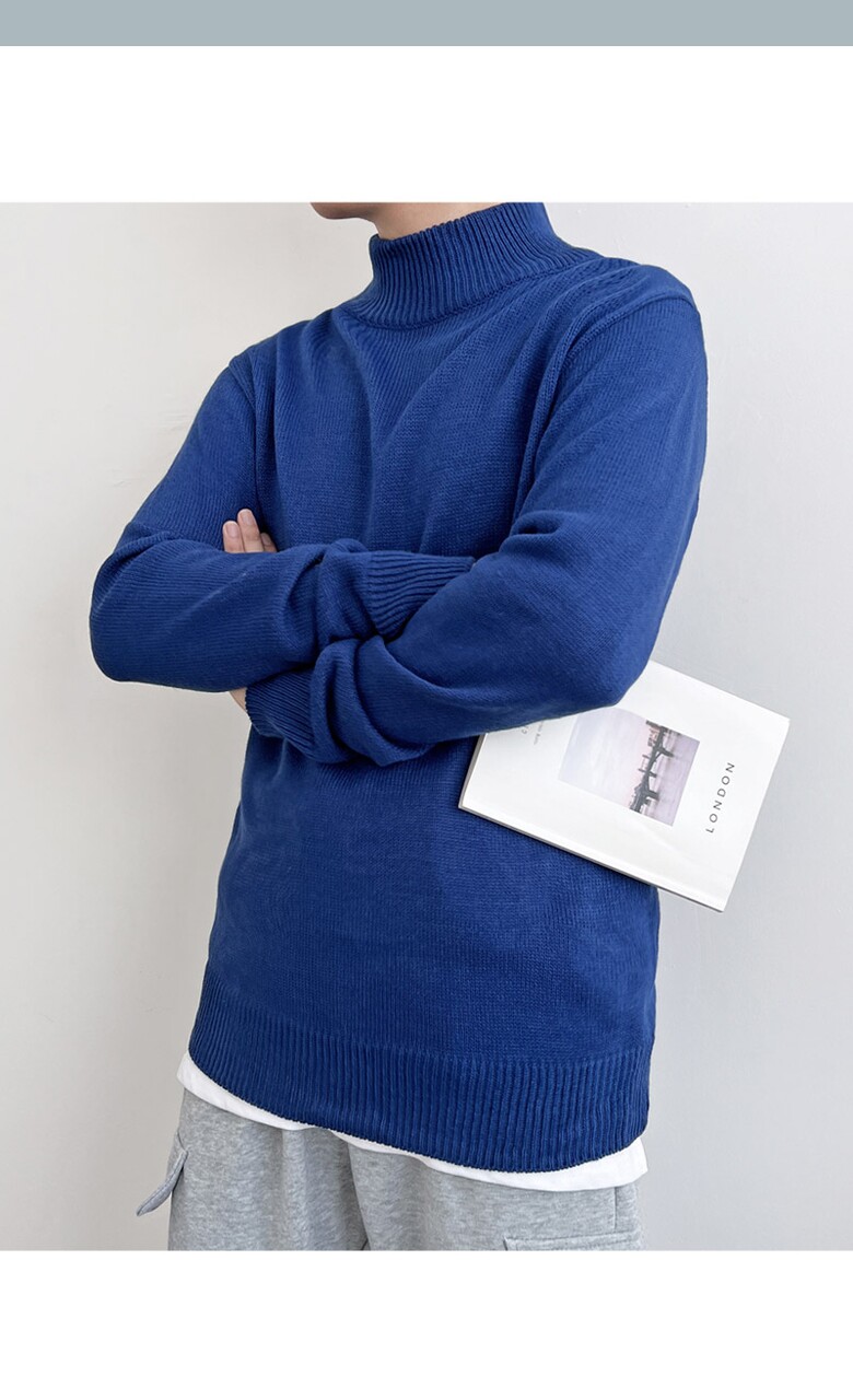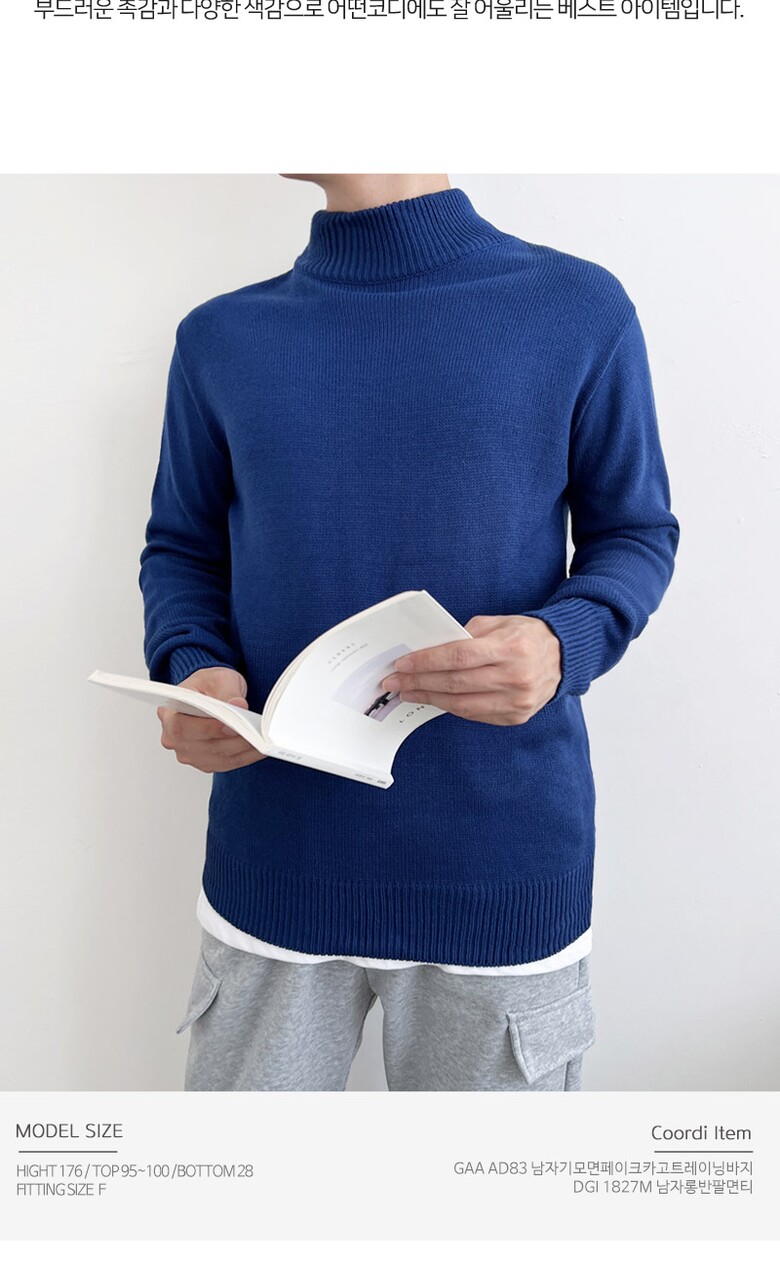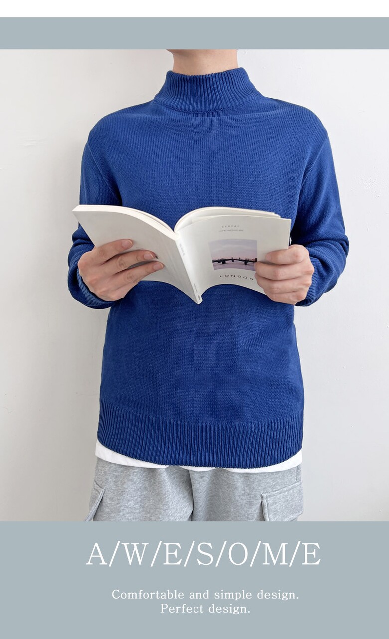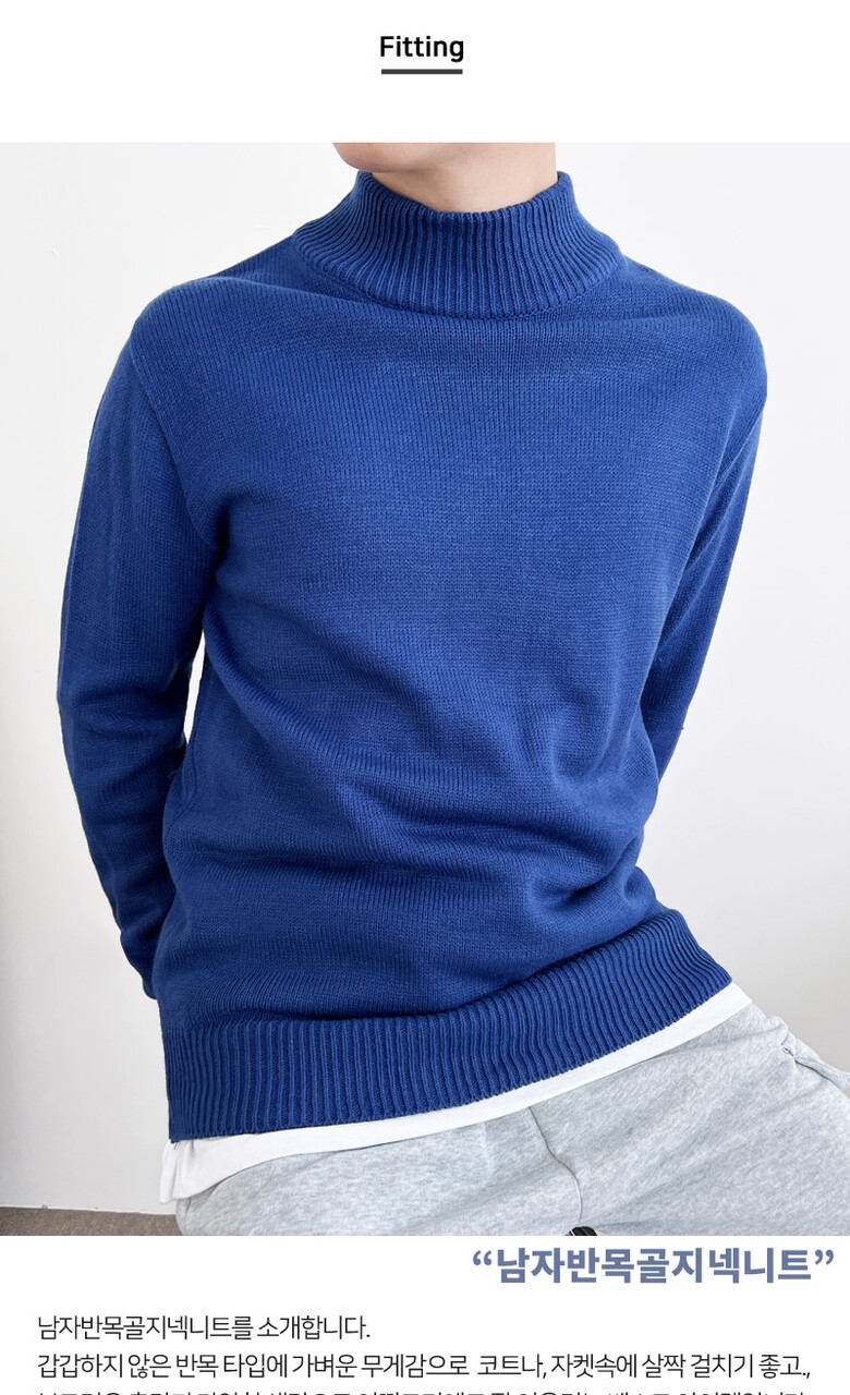 블레오 남자 가을 겨울 기본 반목 골지 캐주얼 긴팔 니트