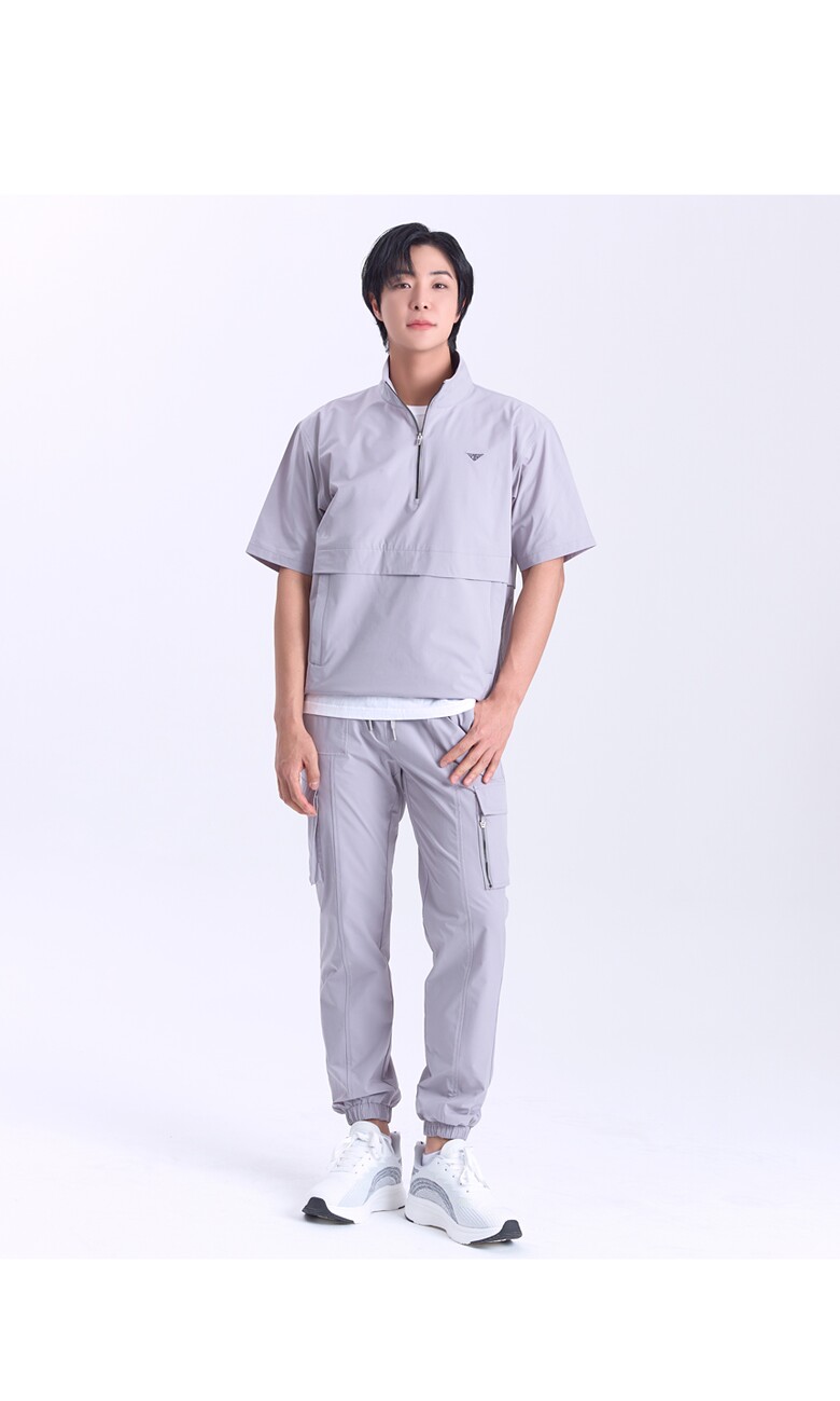 다운블로우 남자 여름 반집업 반팔 티셔츠 조거팬츠 세트 그레이