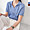 블레오 여성 여름 브이넥 카라 시보리 데일리 반팔 니트