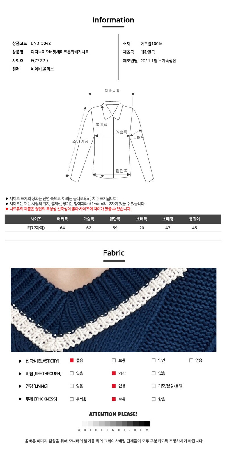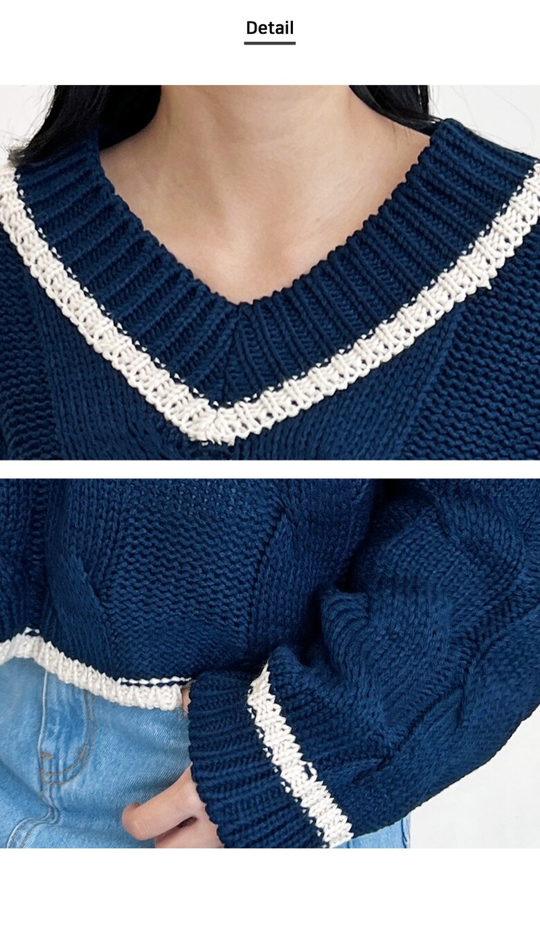 블레오 여성 겨울 브이넥 오버핏 꽈배기 배색 긴팔 니트