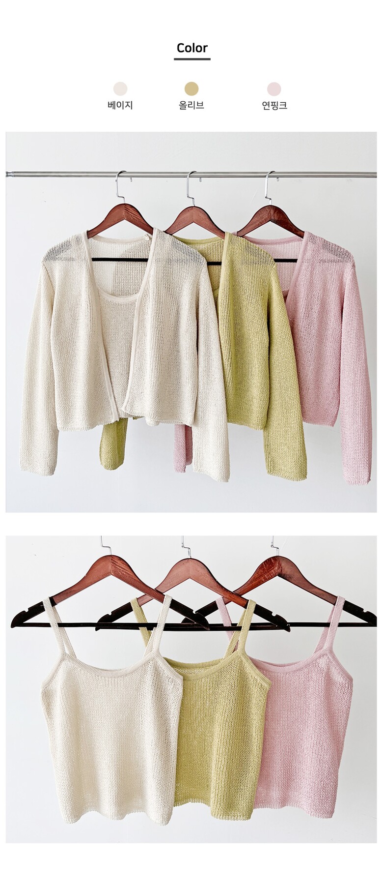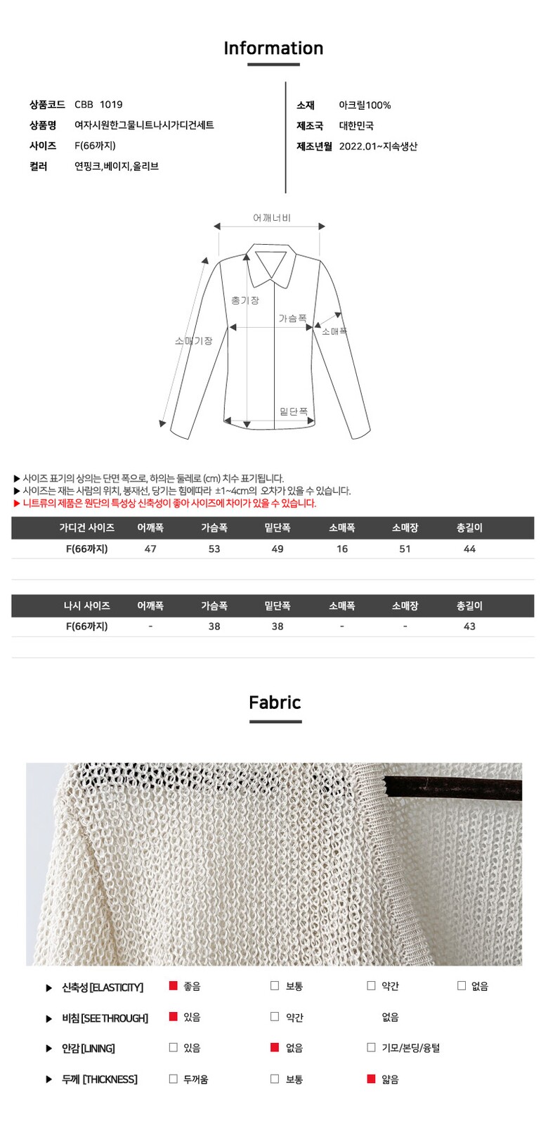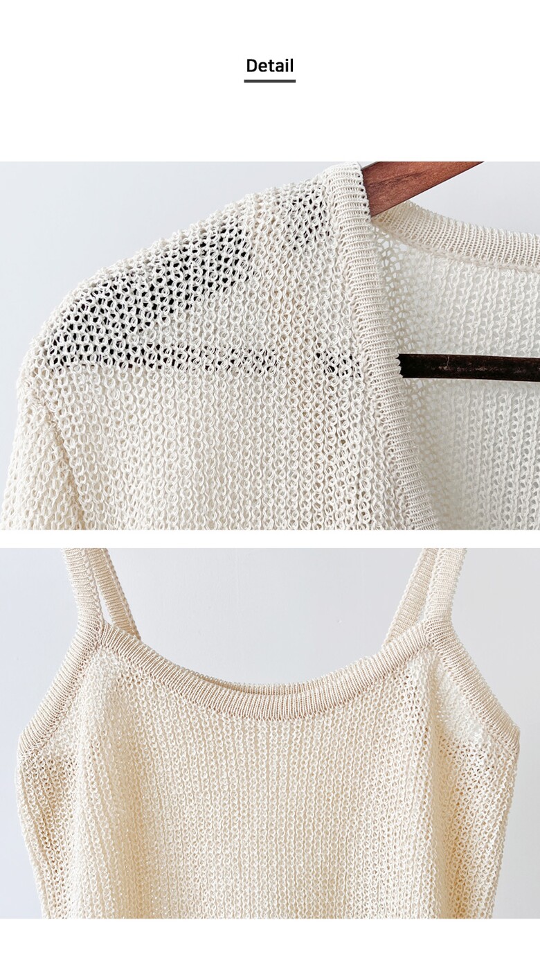 블레오 여성 봄 여름 그물 니트 나시 긴팔 가디건 세트