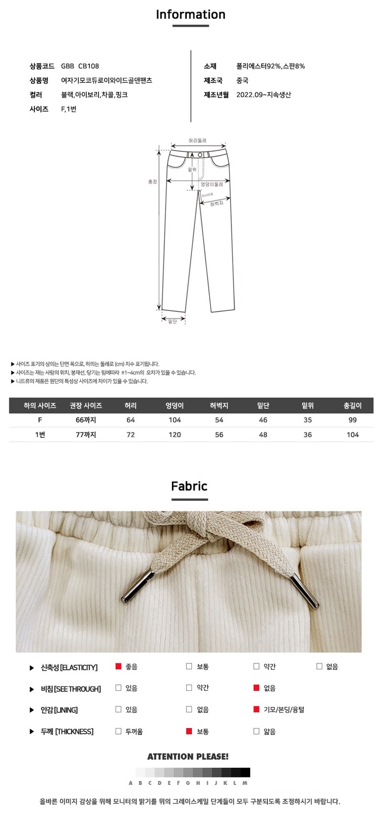 블레오 여성 겨울 기모 와이드 밴딩 코듀로이 골덴 팬츠