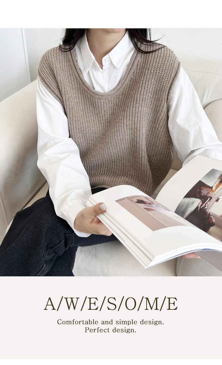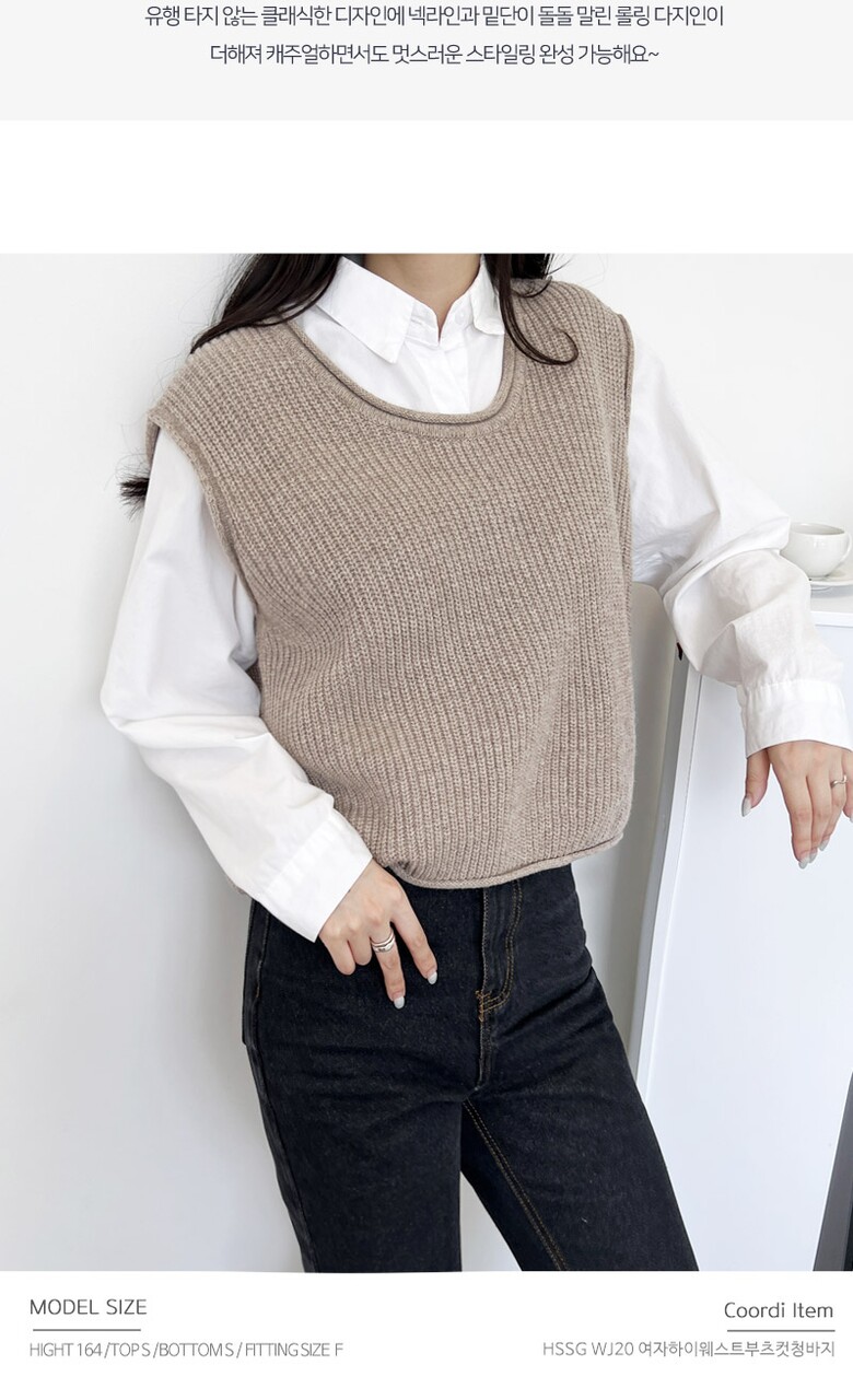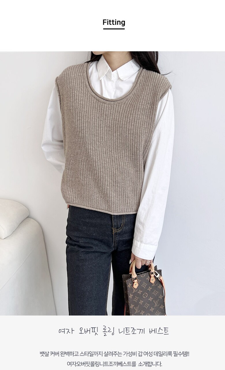 블레오 여성 봄 가을 오버핏 라운드넥 롤링 데일리 니트 조끼