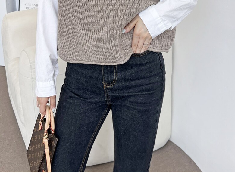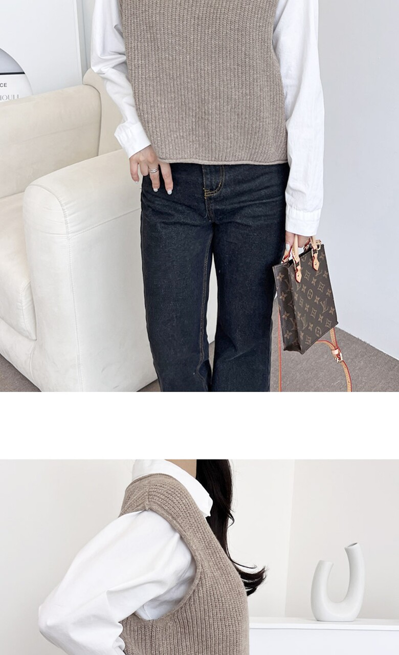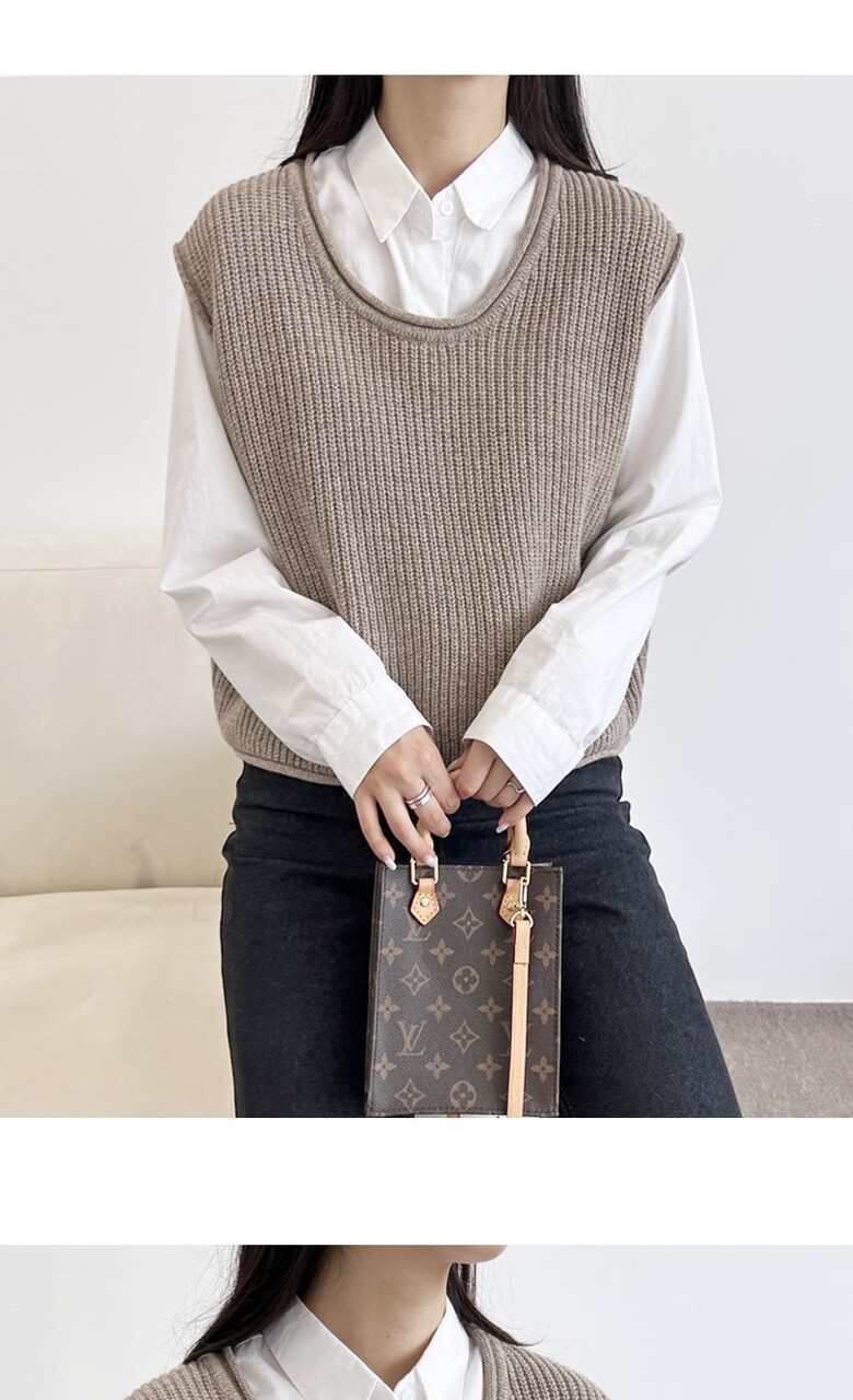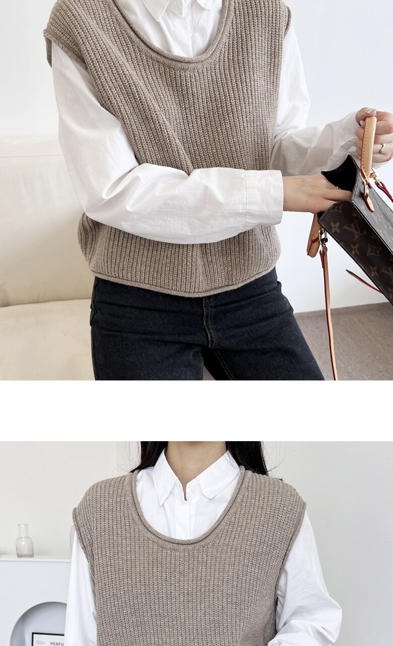 블레오 여성 봄 가을 오버핏 라운드넥 롤링 데일리 니트 조끼