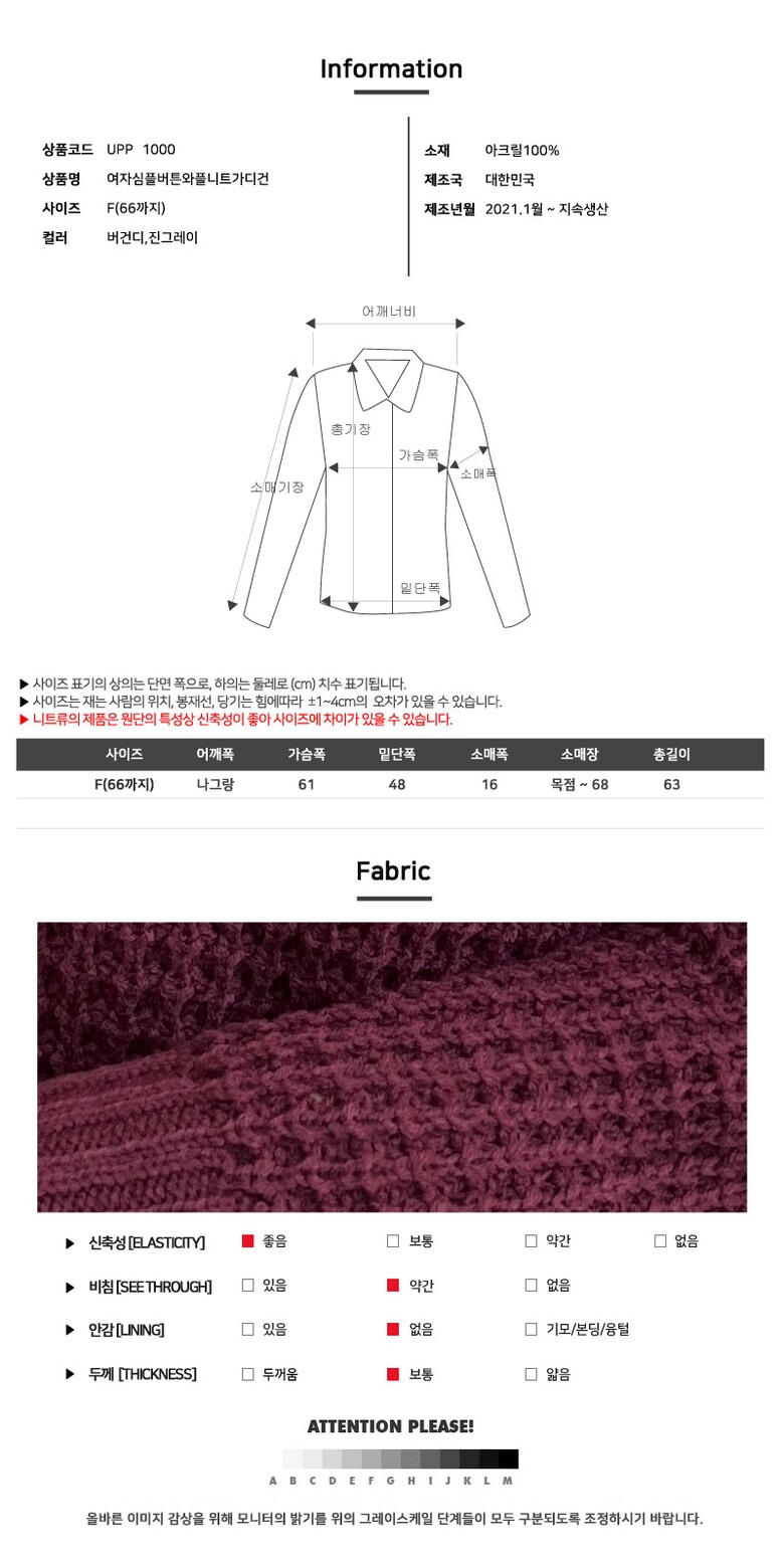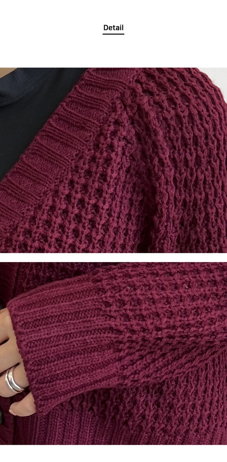 블레오 여성 봄 가을 오버핏 브이넥 와플 긴팔 니트 가디건