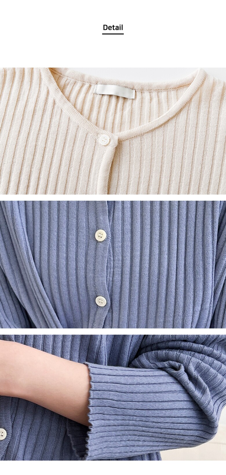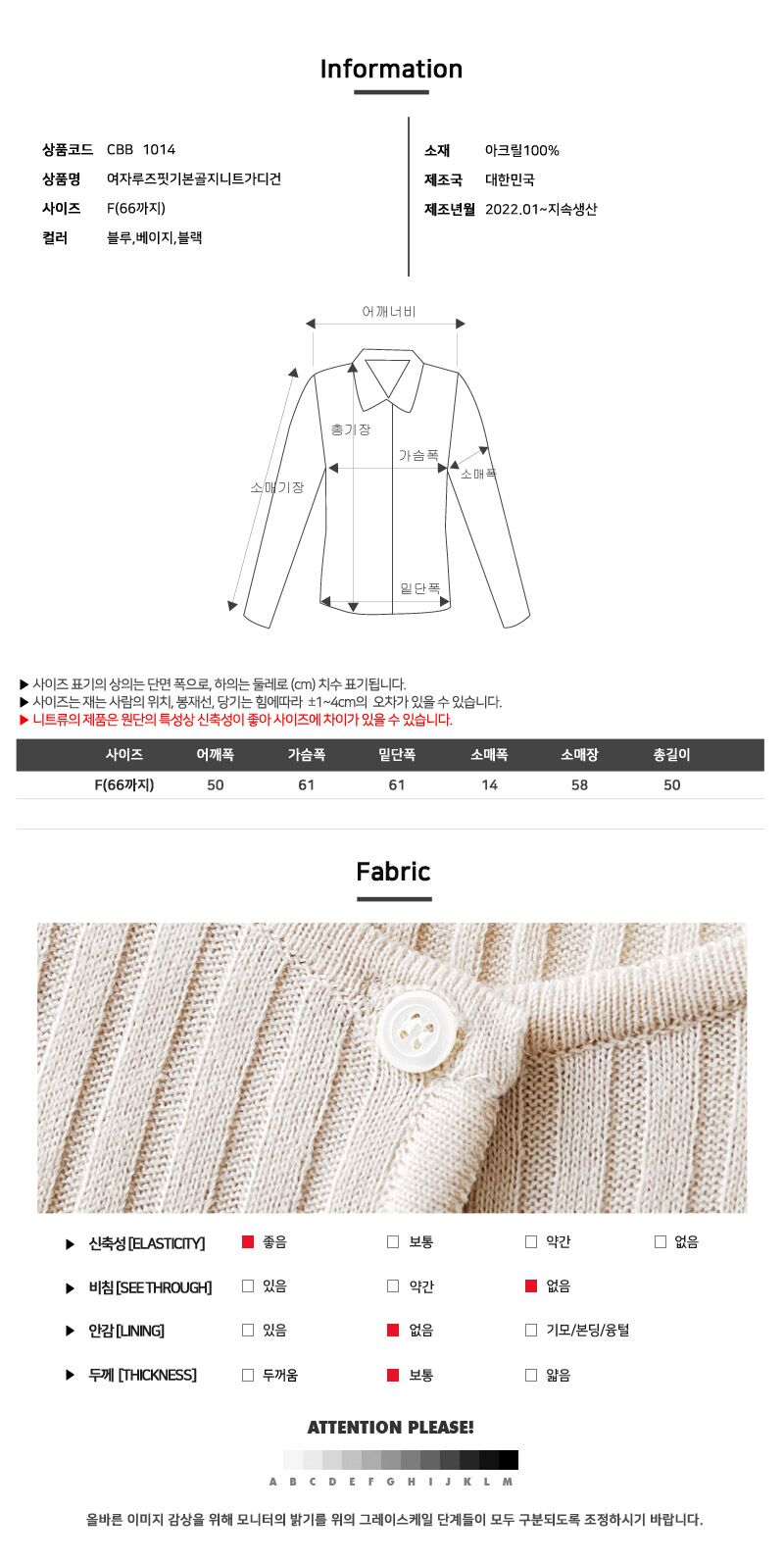블레오 여성 봄 가을 기본 라운드 루즈핏 골지 니트 가디건