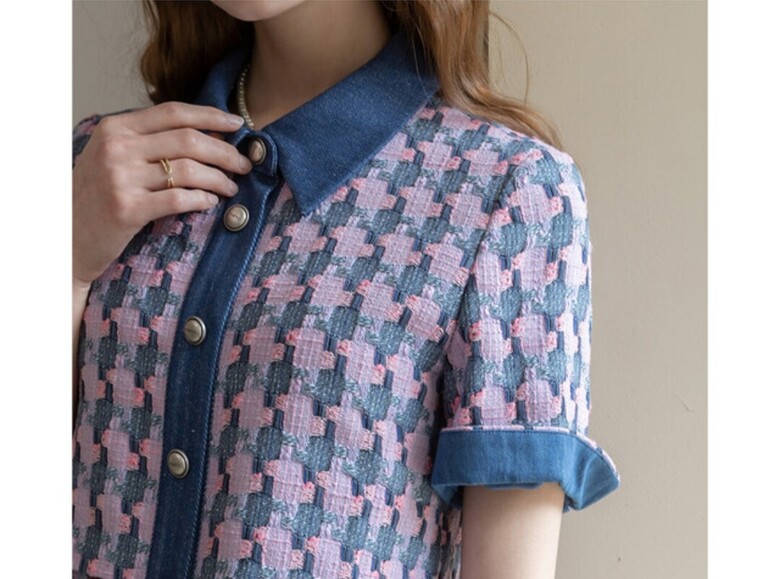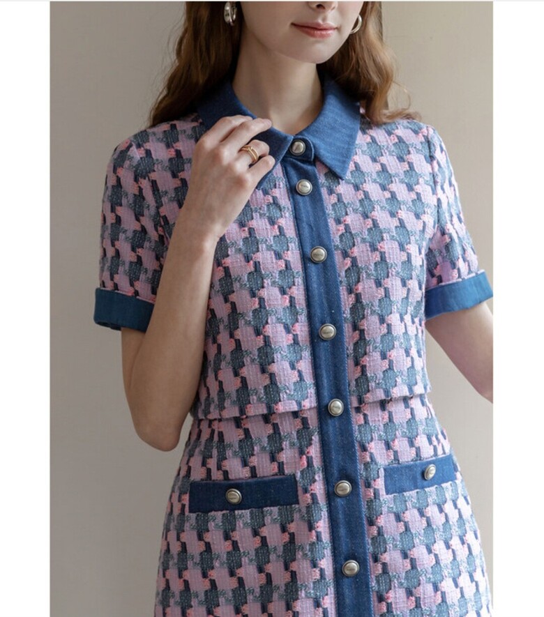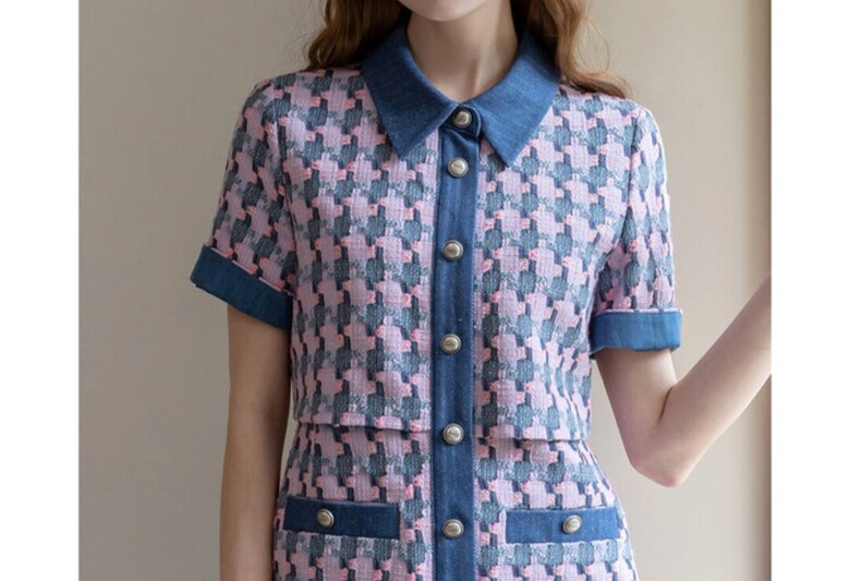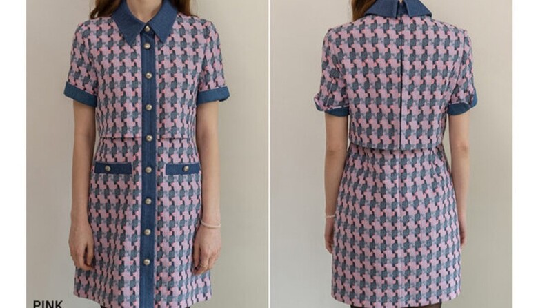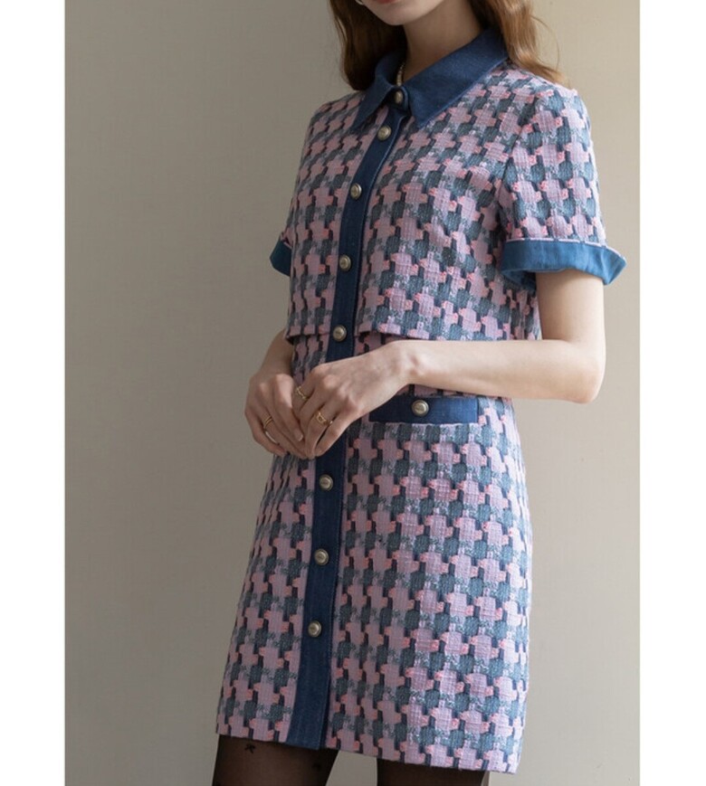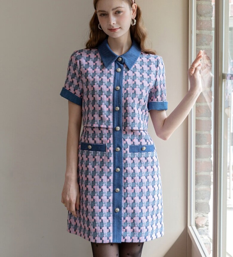 르니앤맥코이 데님 배색 반팔 트위드 원피스ML04OP200