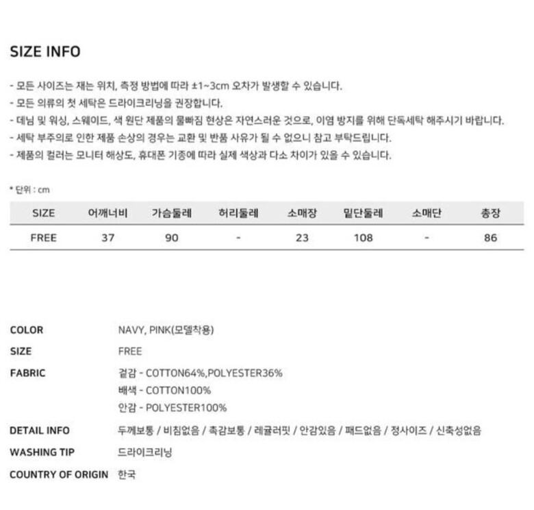 | 6. 세탁방법 및 취급시 주의사항 | 상품상세참조 |