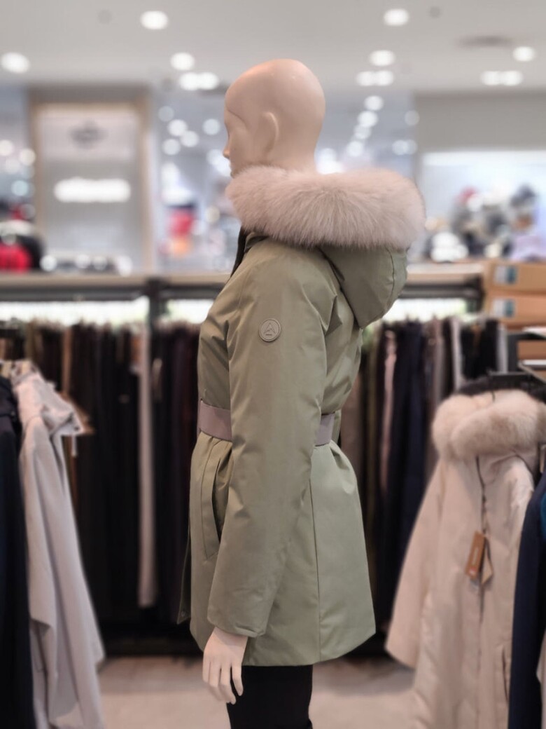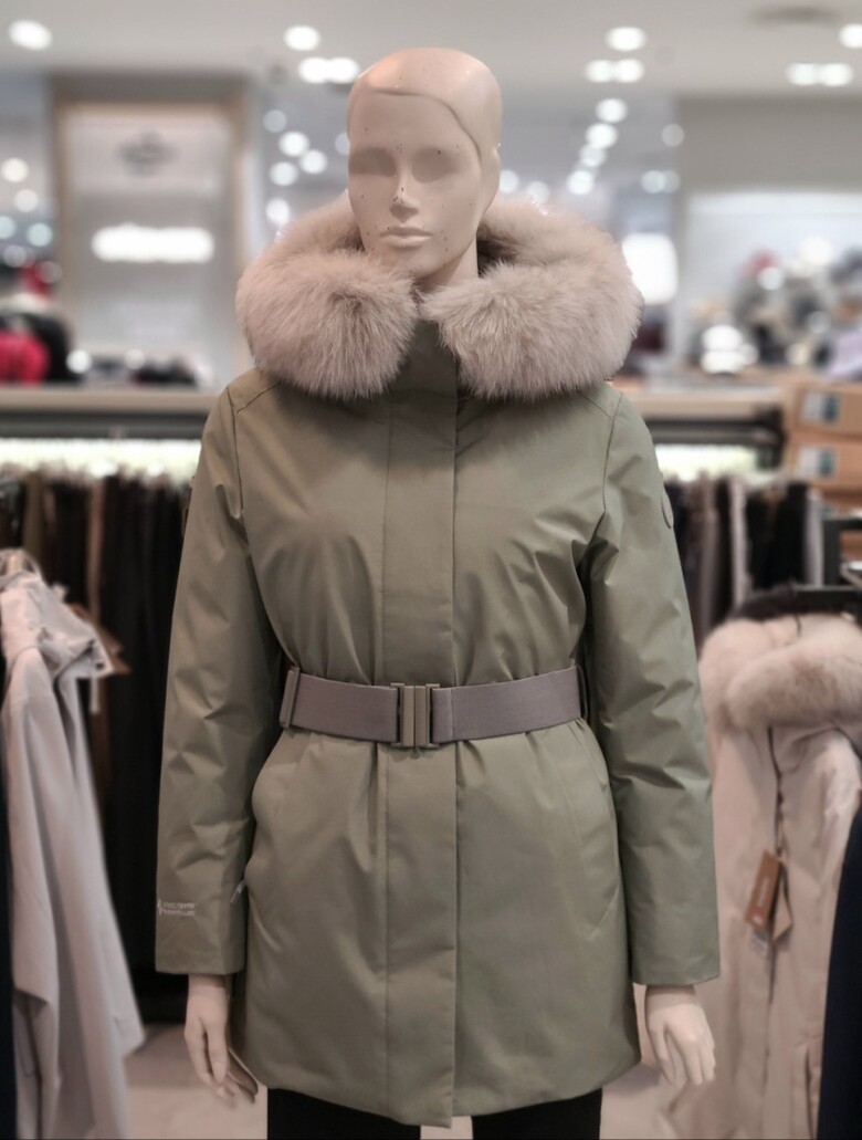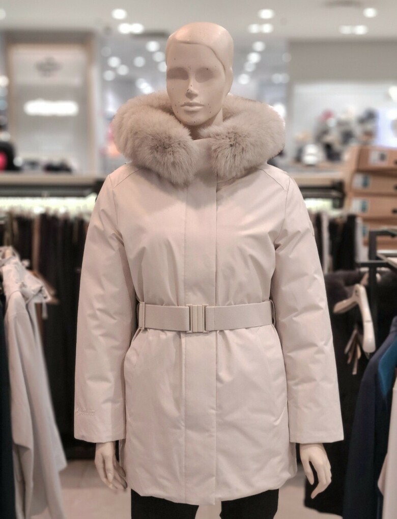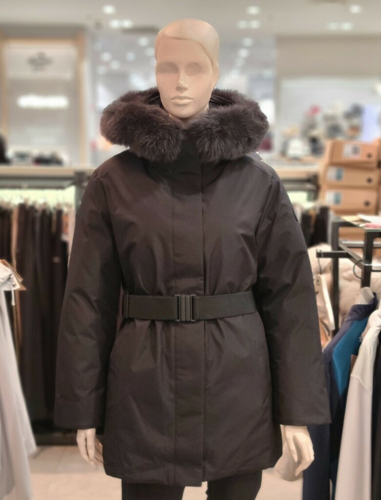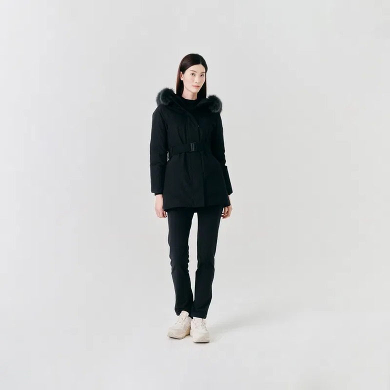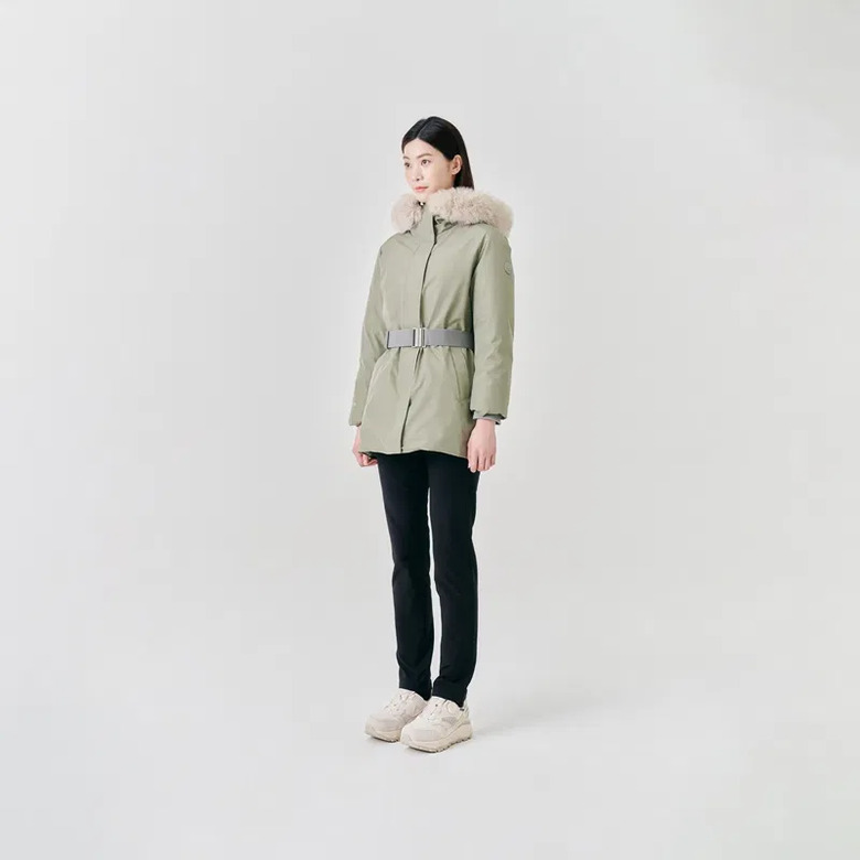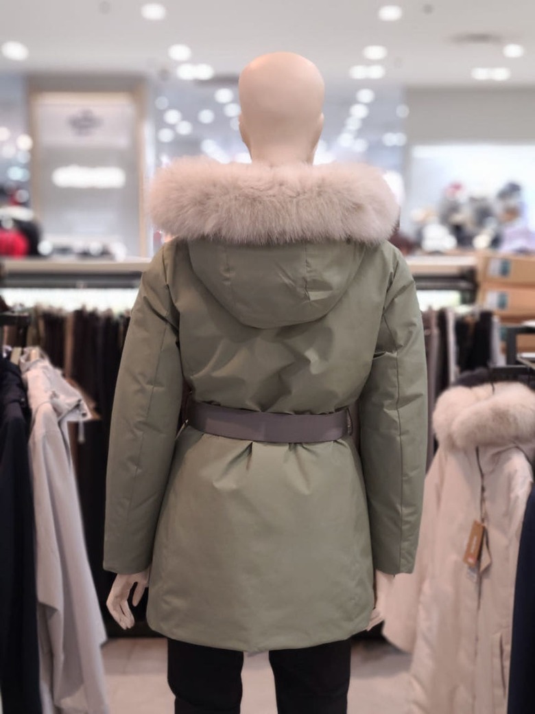 겉감 폴리에스터 100% / 배색1 폴리에스터 100% / 배색2 천연모피(여우) 100% / 벨트 폴리에스터 80% / 벨트 고무사(지정외) 20% / 소맷단 폴리에스터 97% / 소맷단 폴리우레탄 3% / 안감1 나일론 100% / 안감2 나일론 100% / 주머니안감 폴리에스터 100% / 충전재 거위솜털 80% / 충전재 거위깃털 20%