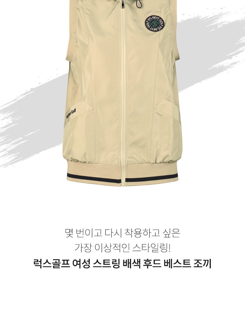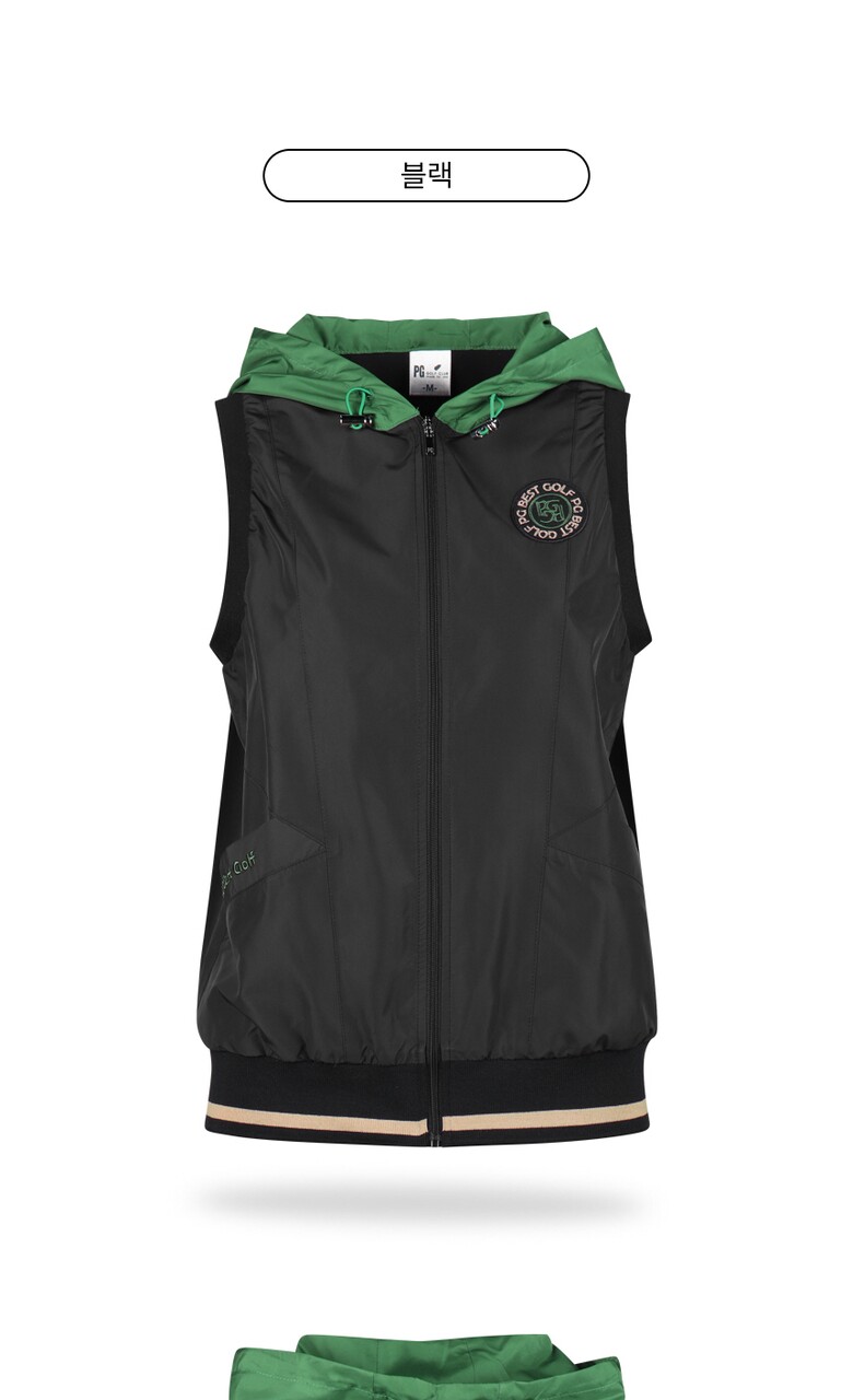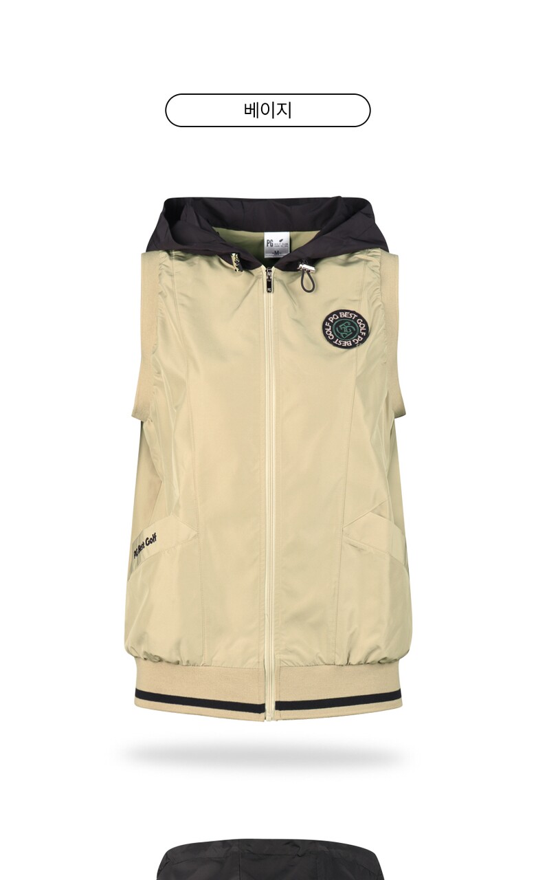 골피아 JB4A537W 여성 스트링 배색 후드 베스트 조끼