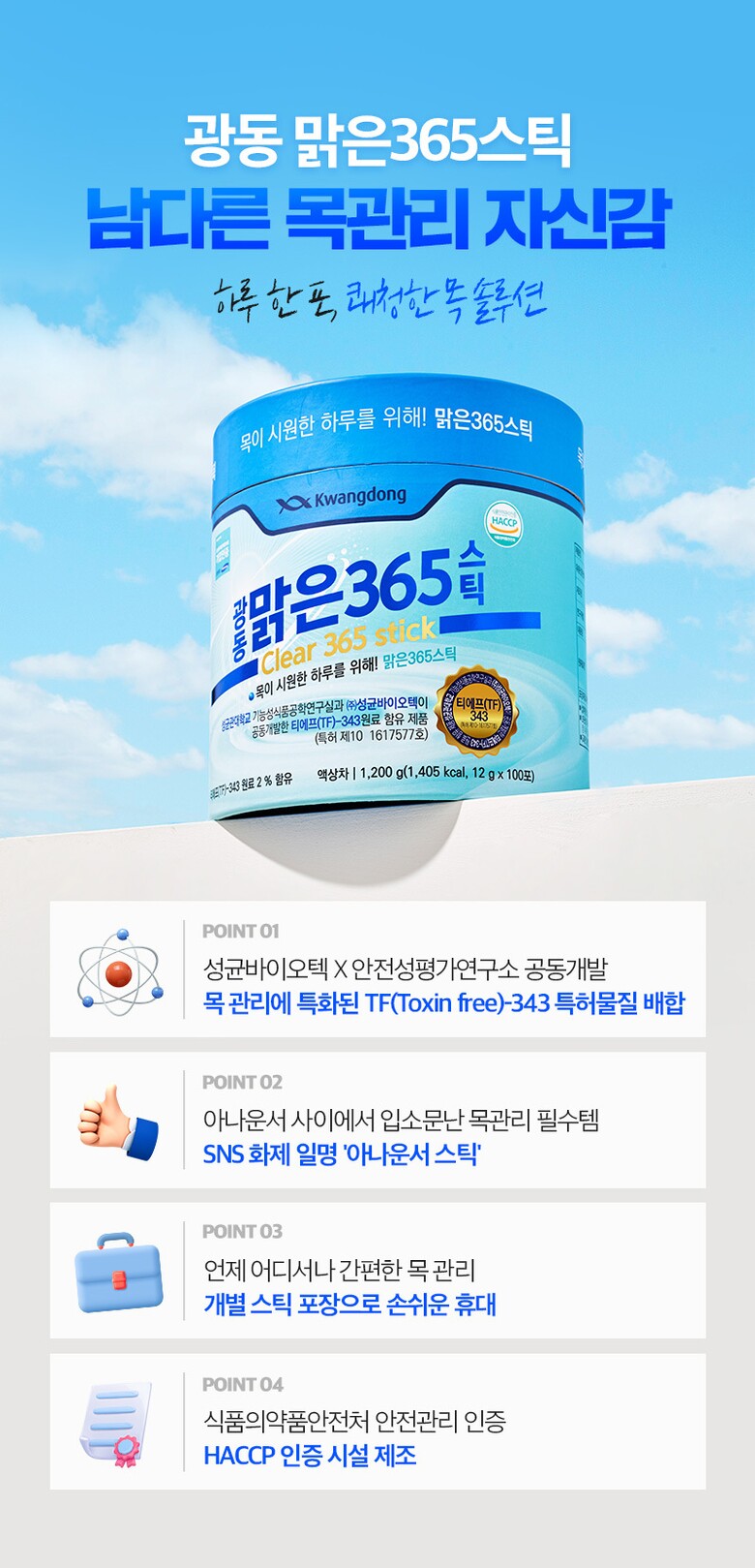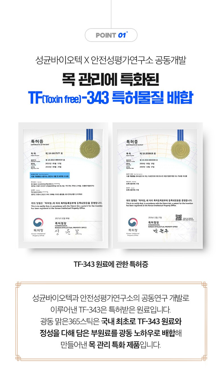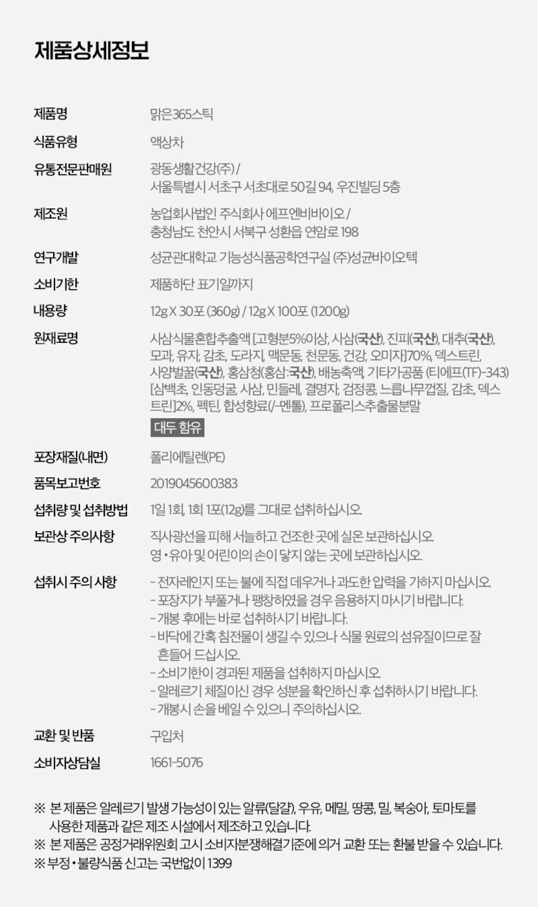 | 1. 제품명 | 광동맑은365 목건강스틱 |