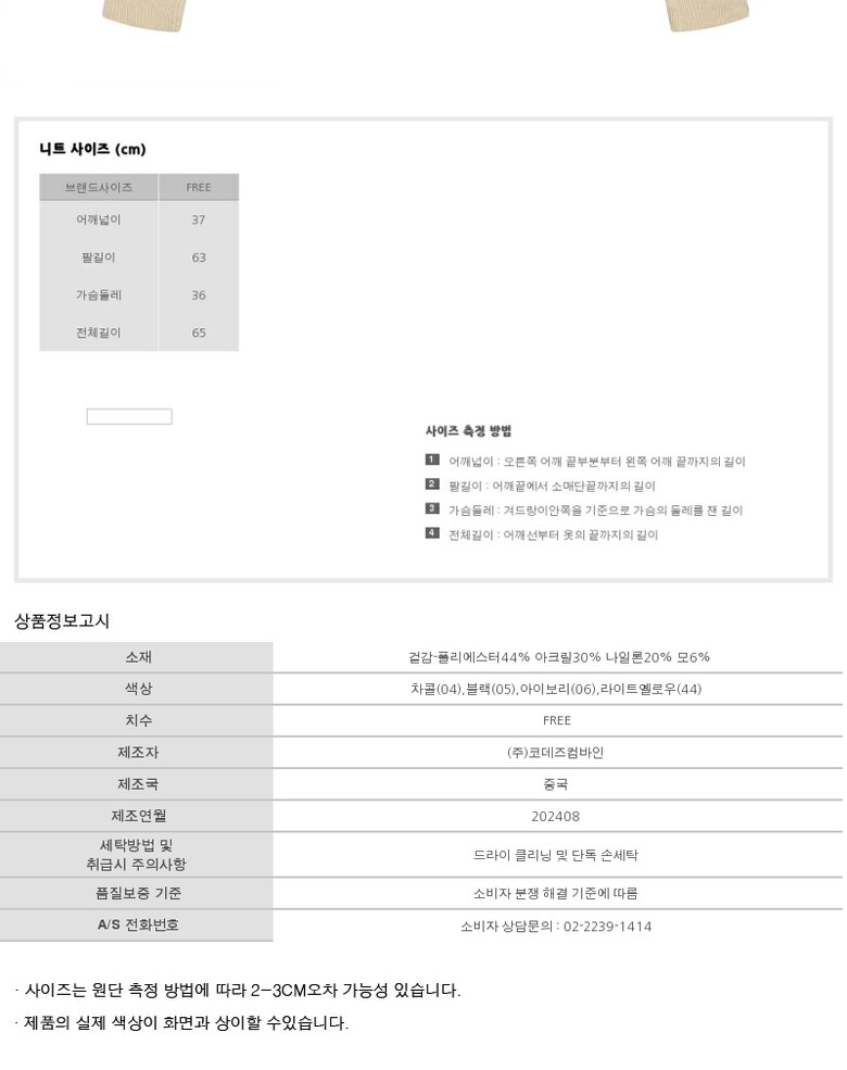 2. 색상 | 차콜(04),블랙(05),아이보리(06),라이트옐로우(44) |