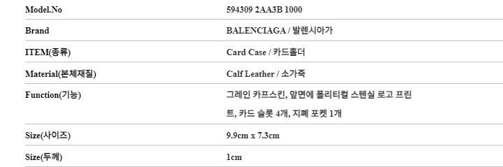 | 4. 제조사 | 발렌시아가/(주)언커먼레이블-병행수입 |
