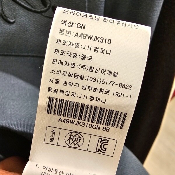| 9. A/S 책임자와 전화번호 | AS 및 기타 문의 사항은 해당 매장 [오은숙,053-253-2520] 으로 전화주시면 감사하겠습니다. AS 및 기타 문의 사항은 해당 매장 [오은숙,053-253-2520] 으로 전화주시면 감사하겠습니다. |