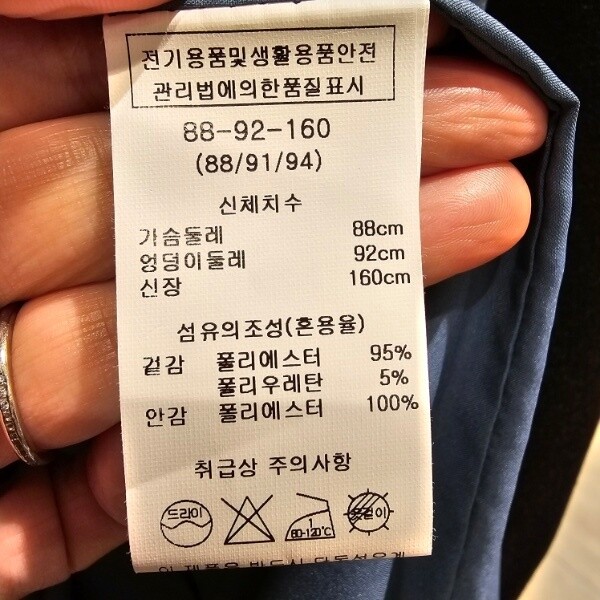 세탁방법 및 취급시 주의사항 : 드라이크리닝