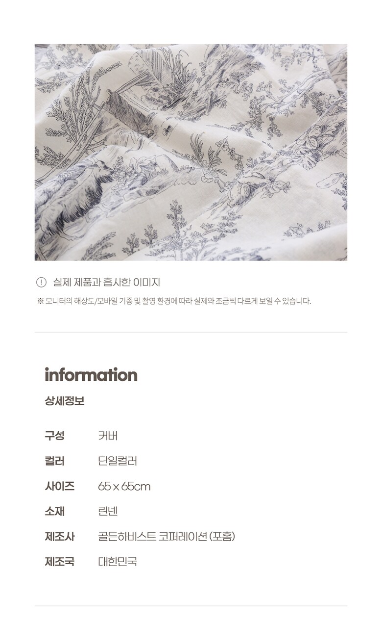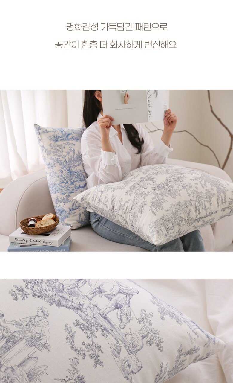 프렌치 뜨왈 린넨 대형 등쿠션 커버 65x65cm