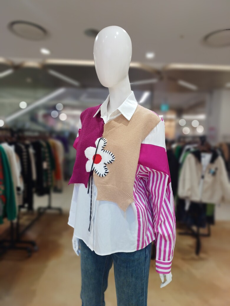 르니앤맥코이 니트 레이어드 셔츠 블라우스ML11BL501