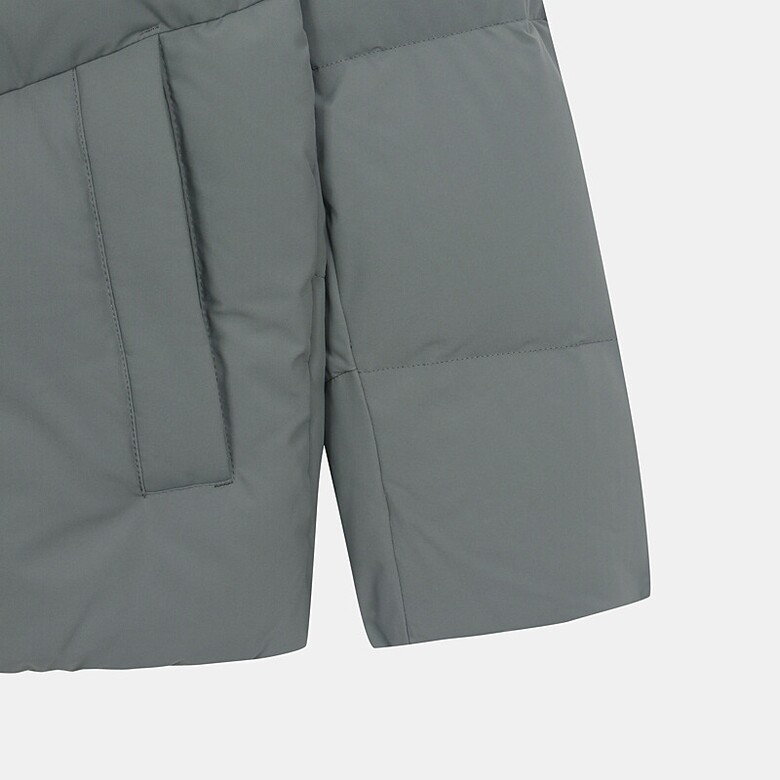 겉감 폴리에스터 100% / 배색 폴리에스터 100% / 소맷단 폴리에스터 72% / 소맷단 폴리우레탄 28% / 안감1 나일론 100% / 안감2 나일론 100% / 주머니안감 폴리에스터 100% / 충전재 거위솜털 80% / 충전재 거위깃털 20%