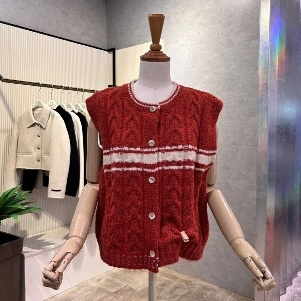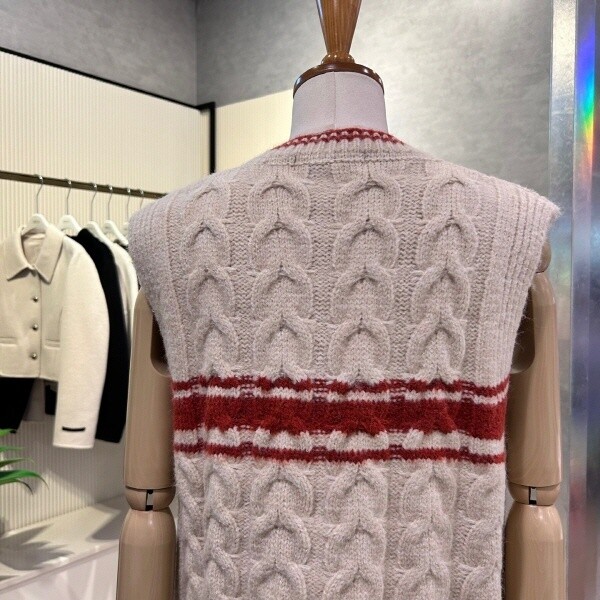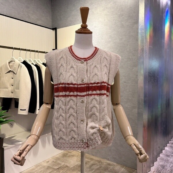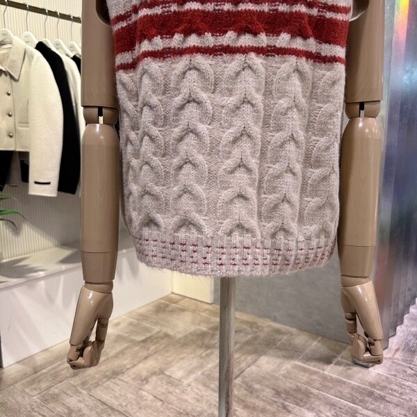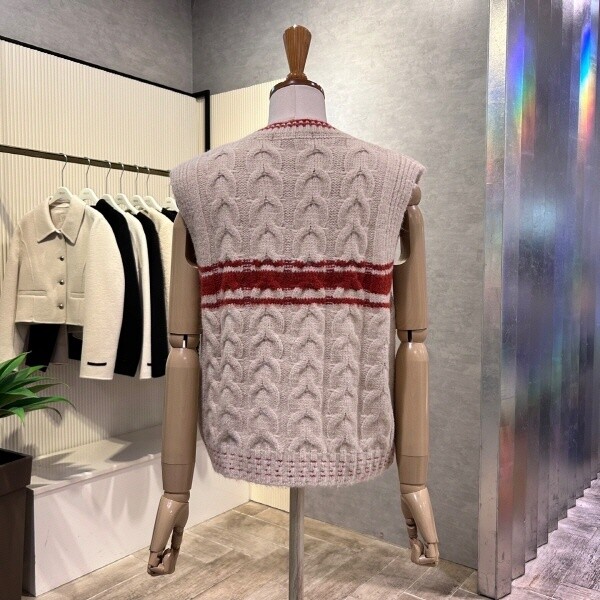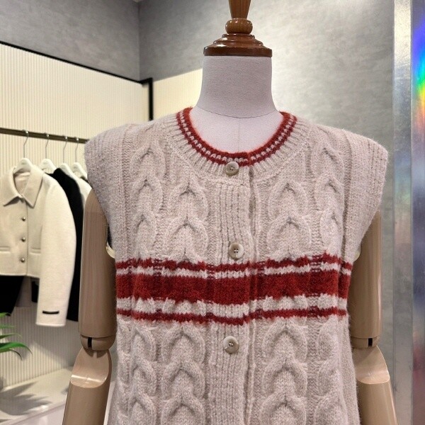 2024년 f/w 신상?라인 배색 꽈배기 베스트 입니다.세련된 디자인으로 레이어드 아이템 입니다.?