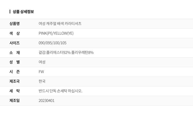 | 2. 색상 | PINK(PI)/YELLOW(YE) |