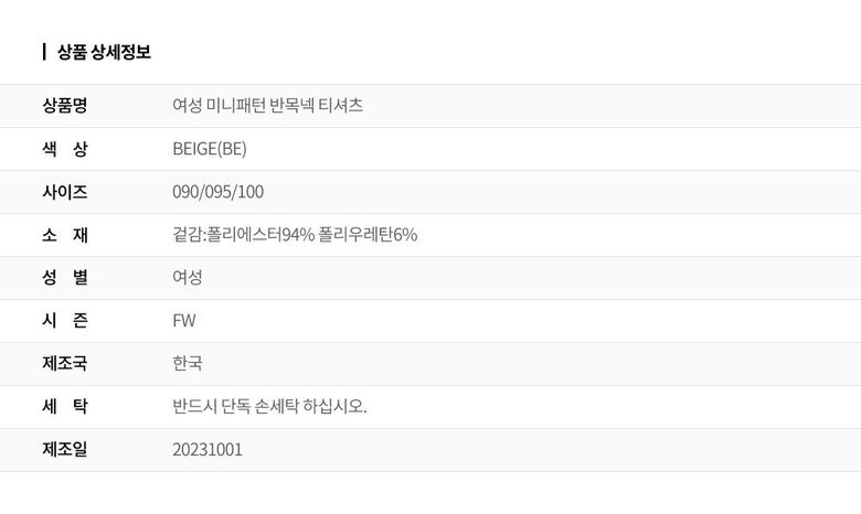 [팜스프링스] 여성 미니패턴 반목넥 티셔츠_STTL234265