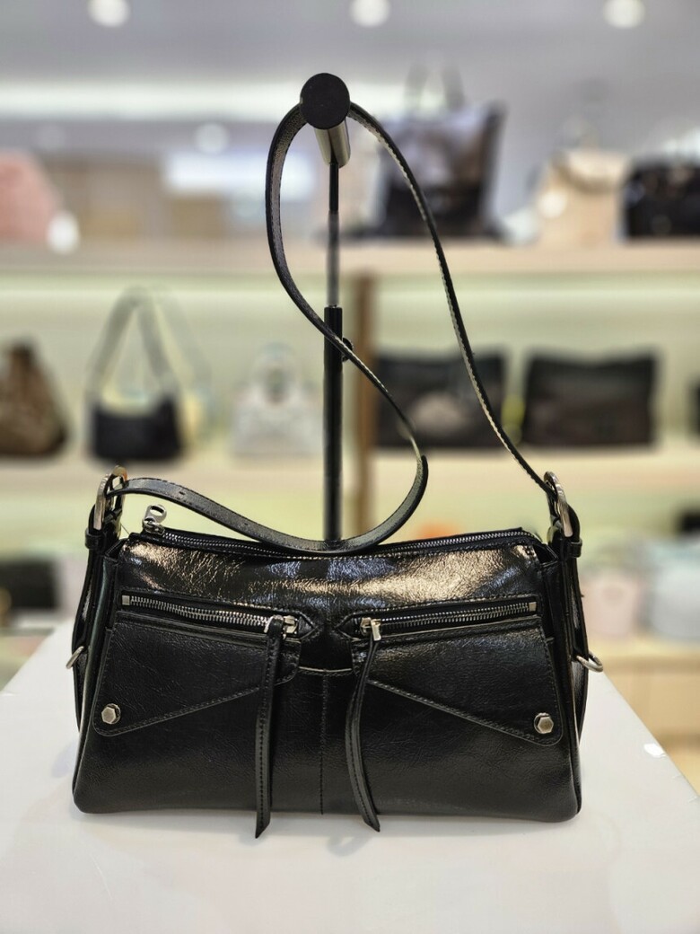 박시한 숄더백 스타일로 선호도에 따라 암홀에 가깝게 착용하여 스타일링하거나
