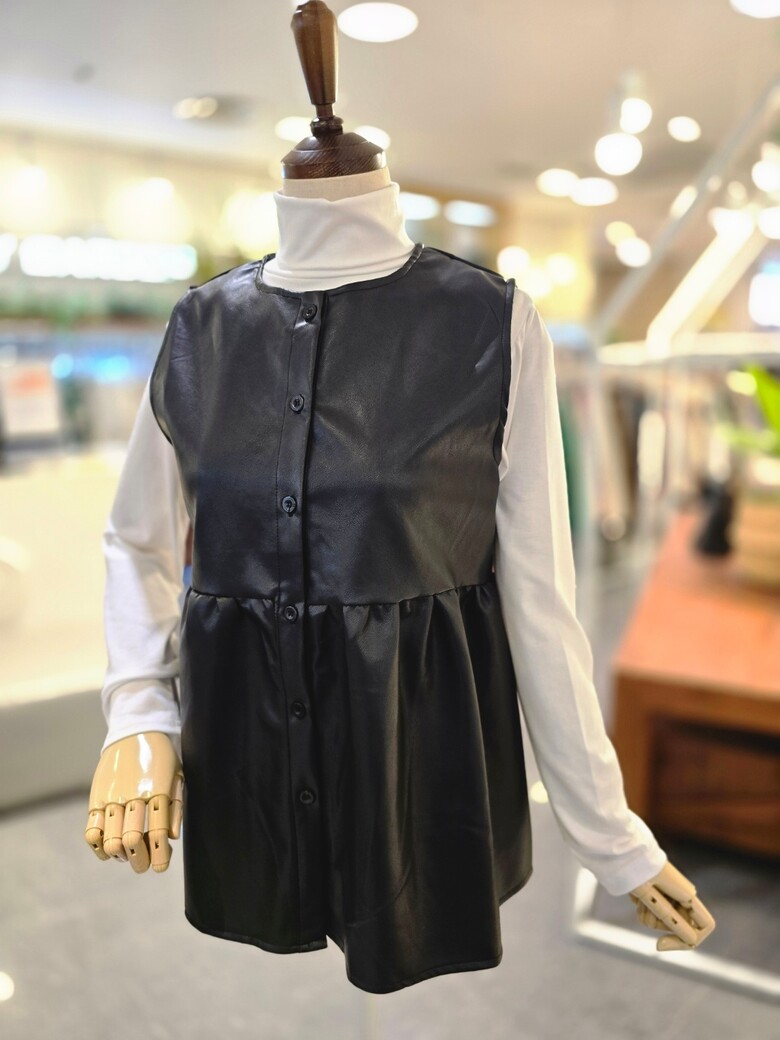 M4F9V107_허리셔링 레자조끼