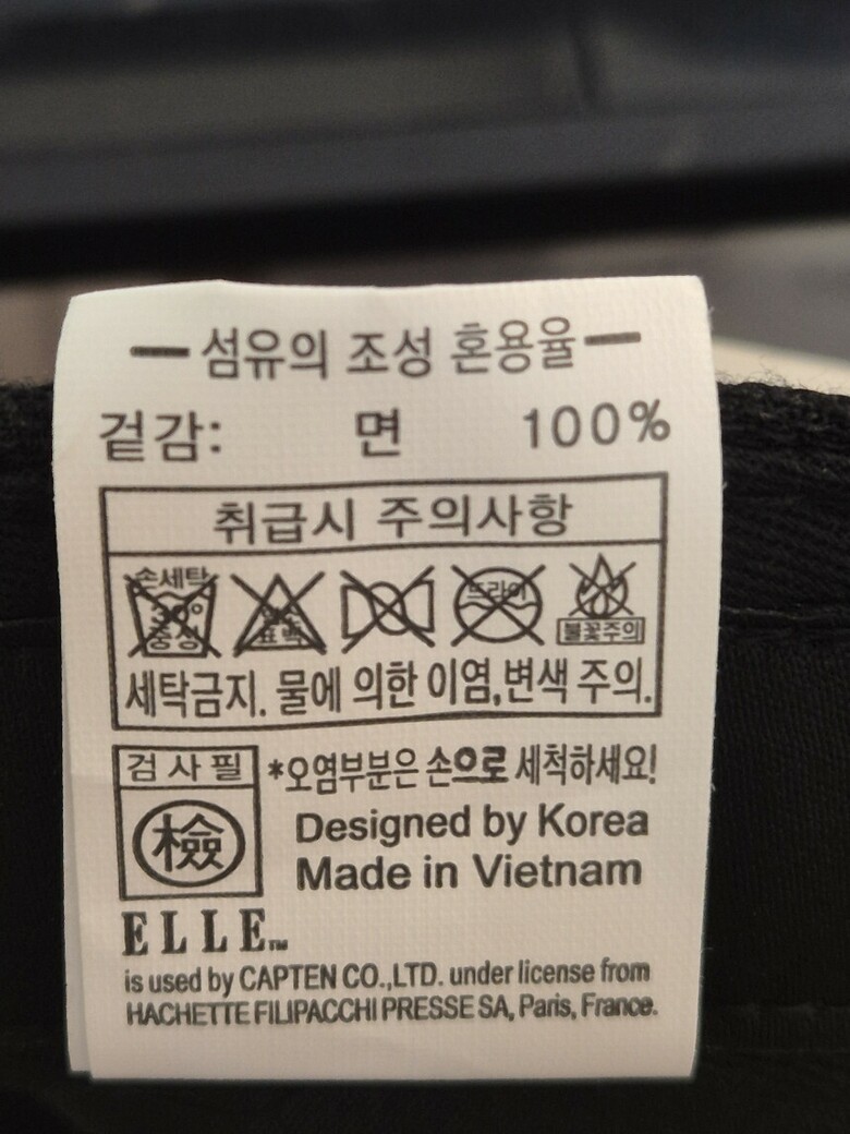 | 2. 소재 | 겉감:면 100% |