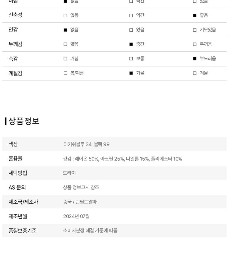 제품소재 : 레이온50%,아크릴25%,나일론15%,폴리에스터10%