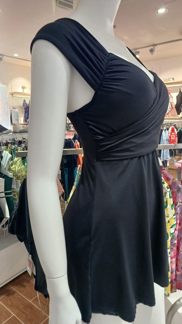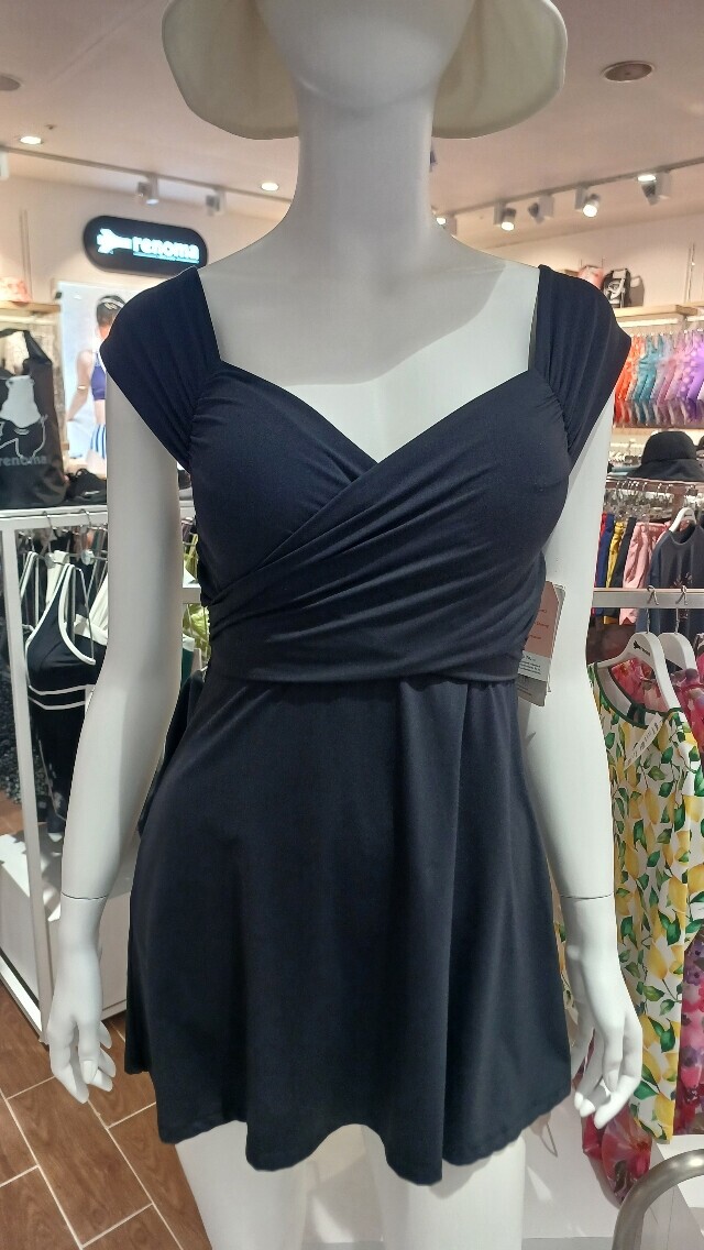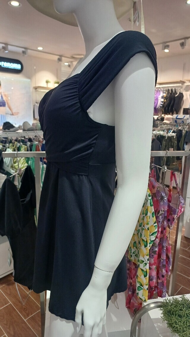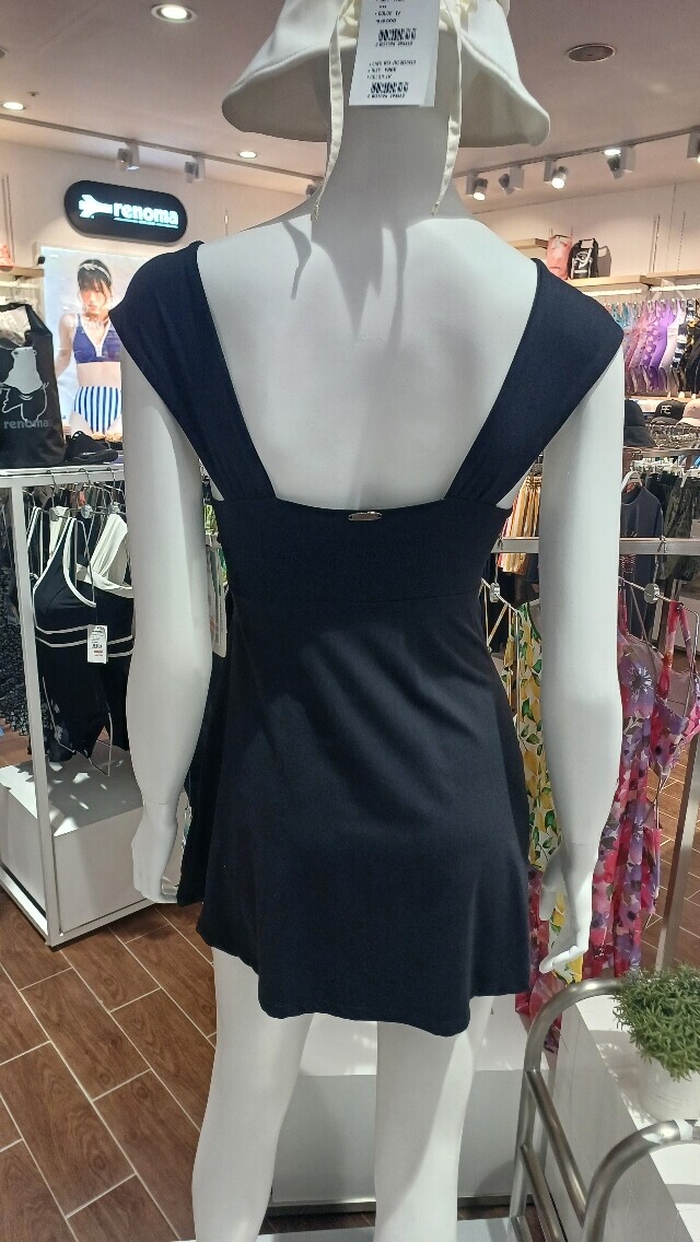 신축성 좋은 원단을 사용 착용감 부드럽고 편안한 스타일로 가슴 라인셔링(와이어내장) 디테일로 여성스러움을 더하며 삼각 기본원피스에 스커트가 있어 체형커버에 도움이 되는 블랙 비치 원피스입니다.