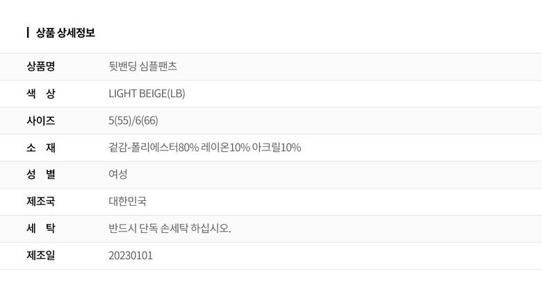 | 6. 세탁방법 및 취급시 주의사항 | 상세페이지 참조 |