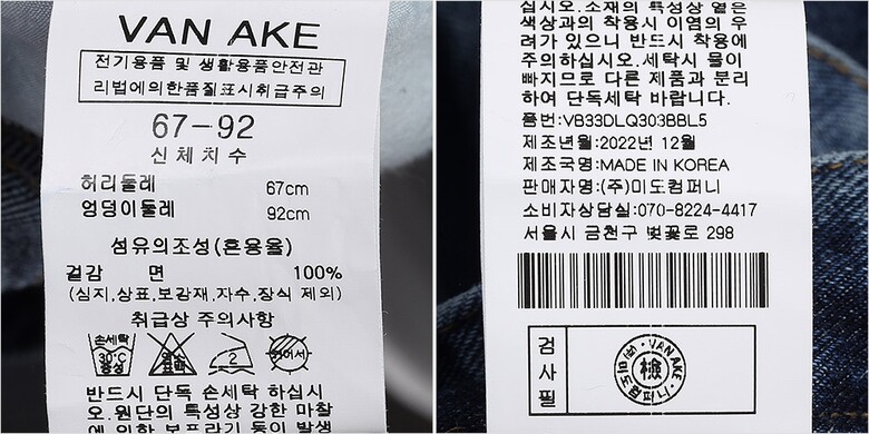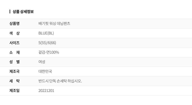 | 6. 세탁방법 및 취급시 주의사항 | 상세페이지 참조 |